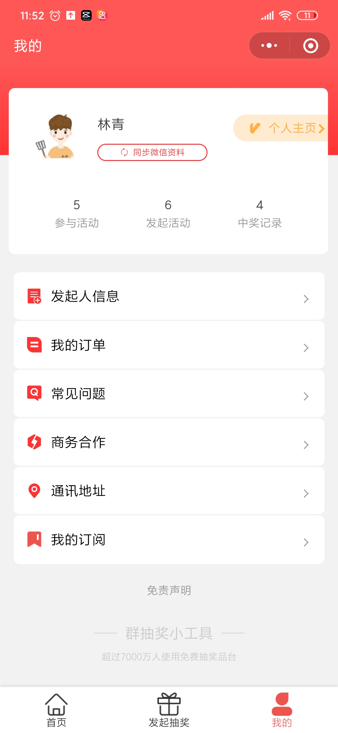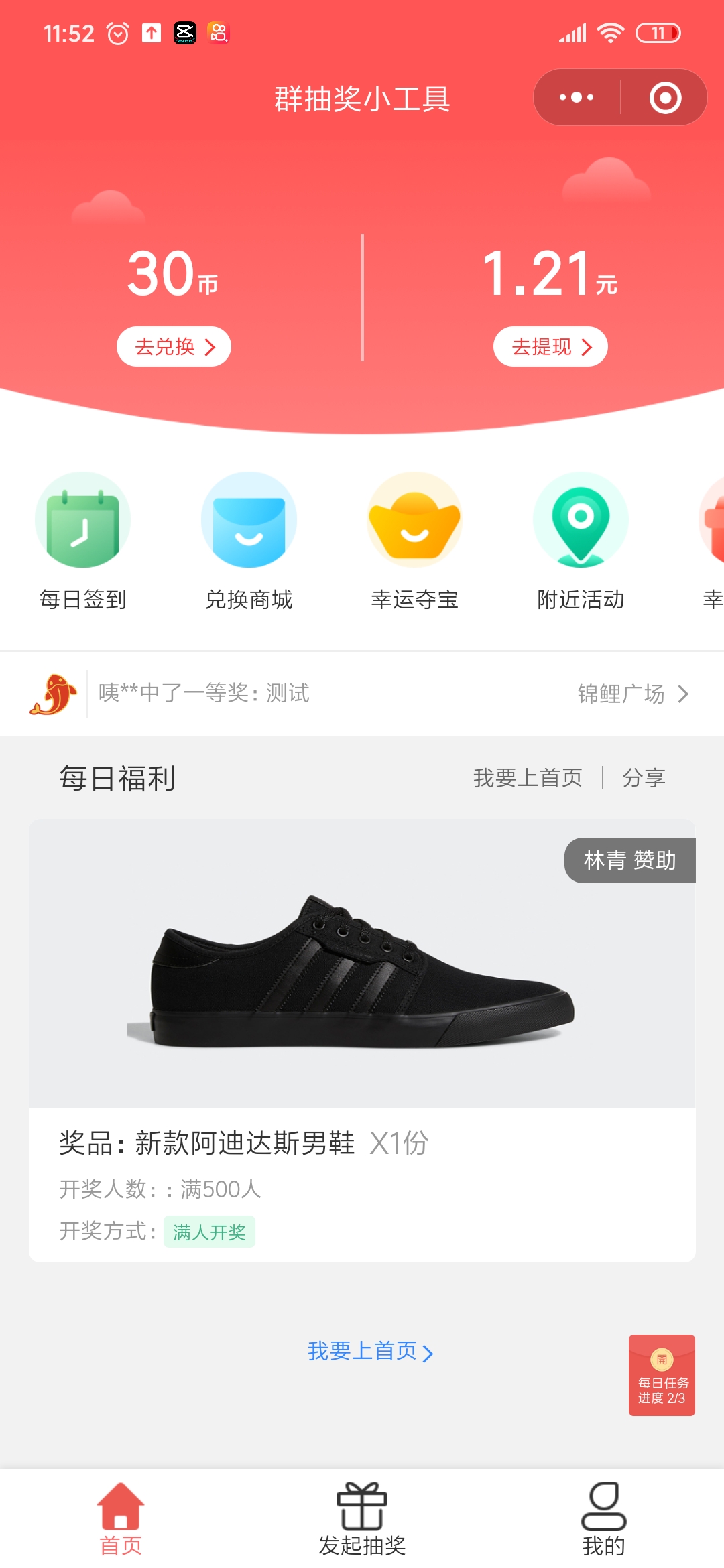 - 在微信中搜索“群抽奖小工具”即可进入小程序