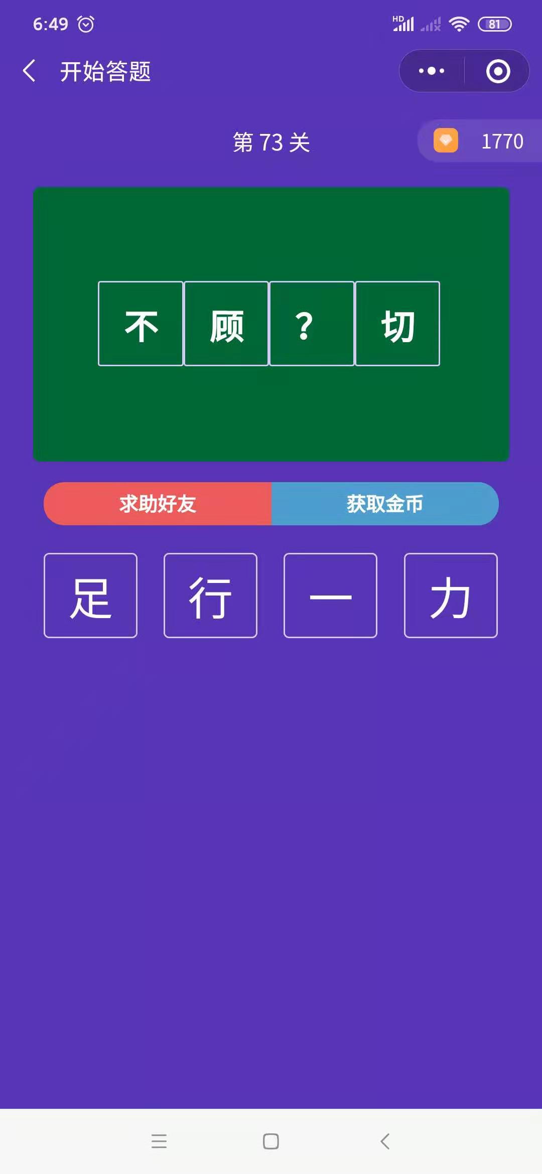 一款在线猜成语小程序,本程序属于教育,成语接龙,答题,成语闯关,填空答题类益智小程序,想知道自己成语功底怎么样吗?就来试试能闯多少关吧!