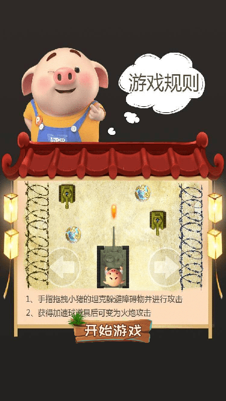 经典坦克越野小游戏,玩家通过手指控制坦克的移动方向进行射击攻打敌人,游戏途中可随机获得各种道具奖励,跟随小猪一起感受指尖的快感吧