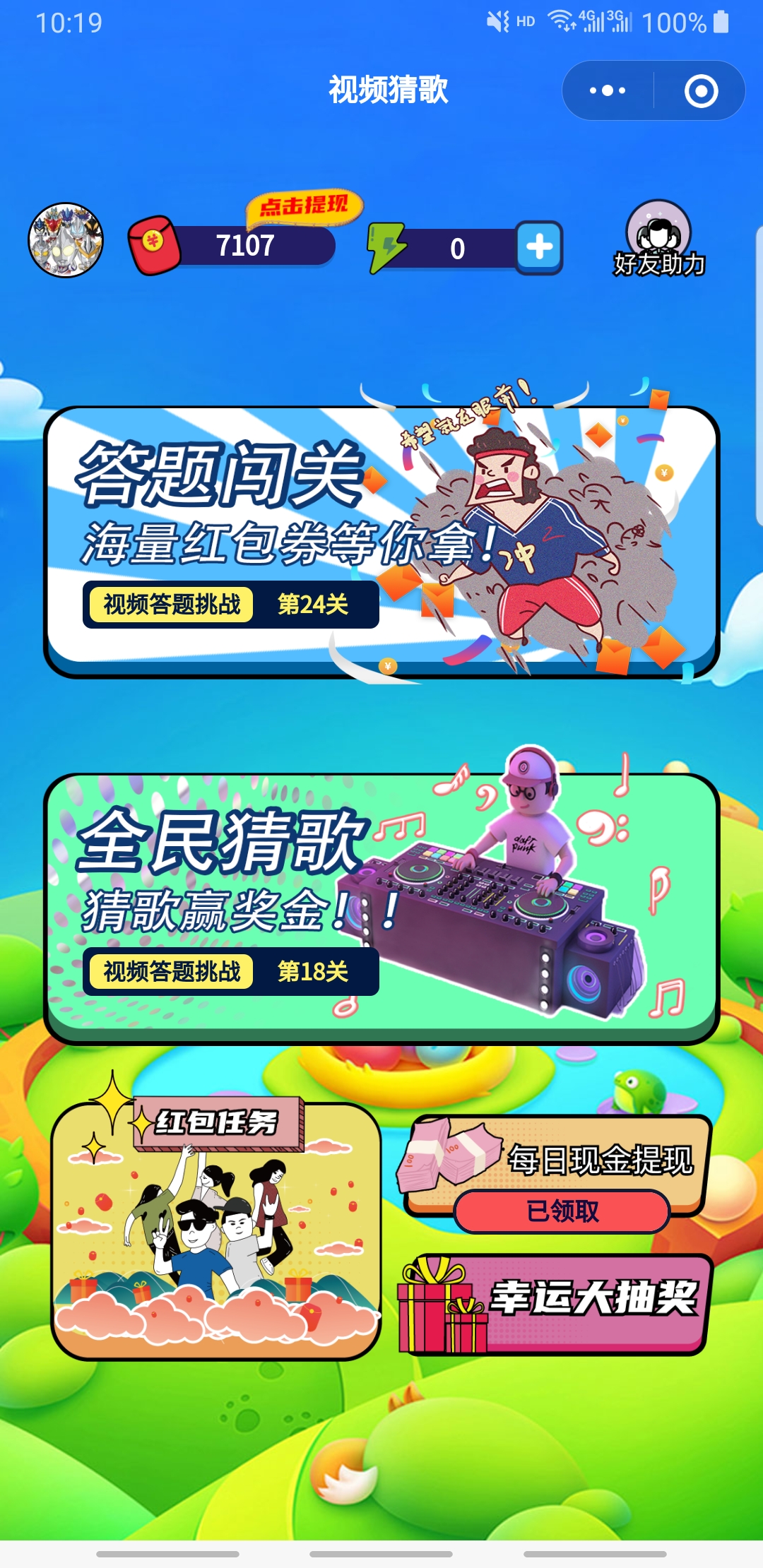 视频猜歌小小程序是一款休闲娱乐微信小程序,玩耍模式有两种:1.用户通过看短视频回答问题,答对得到相应积分红包2.传统听歌曲片段猜歌名。