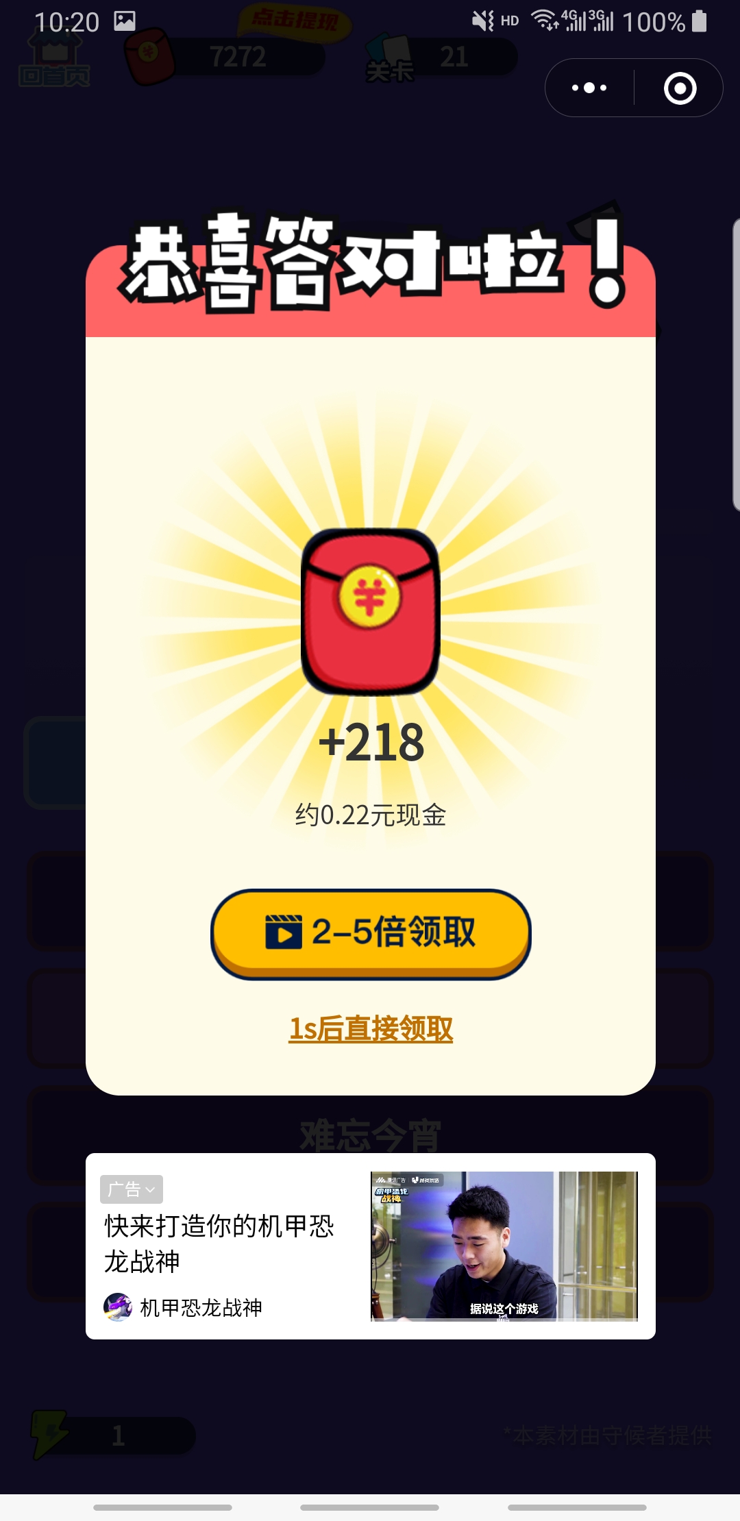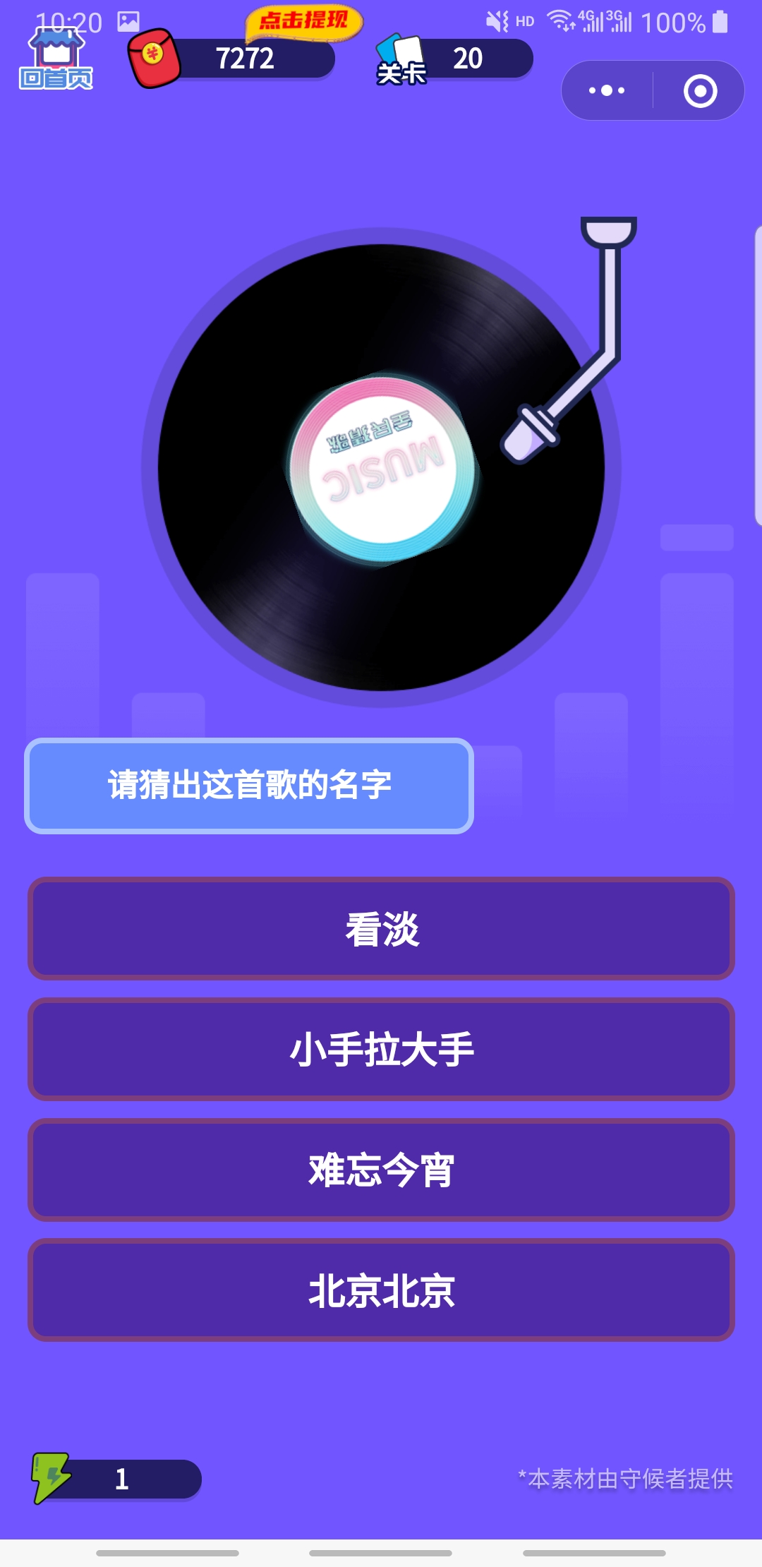 - 使用微信扫描页面上方二维码进入视频猜歌