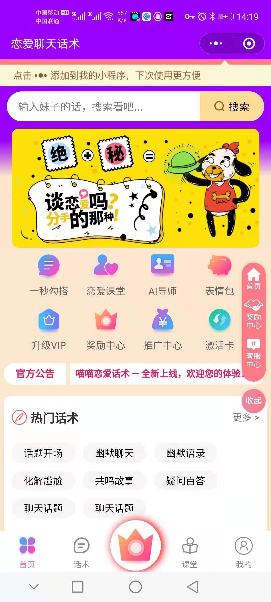 - 在微信中搜索“恋爱聊天话术AI”即可进入小程序