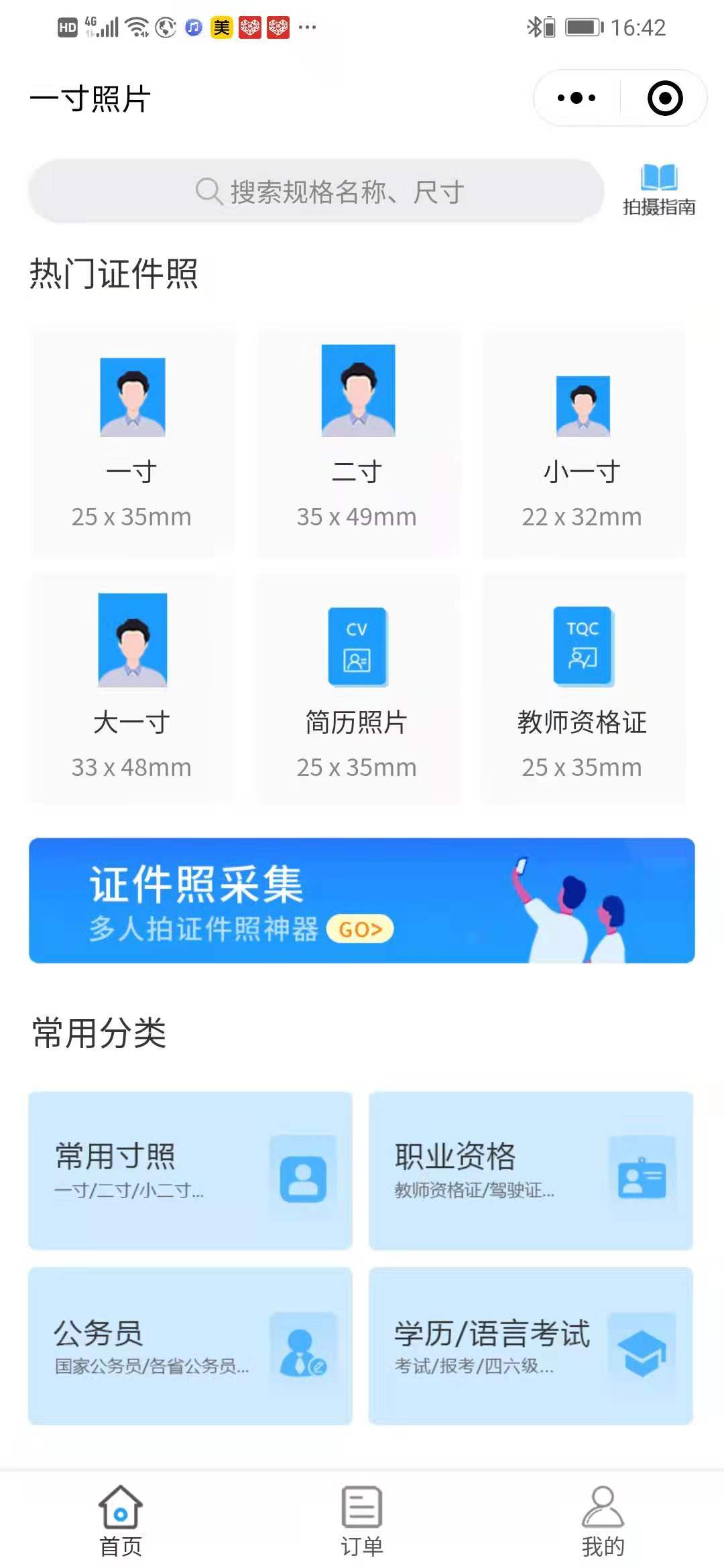 - 在微信中搜索“一寸照片”即可进入小程序