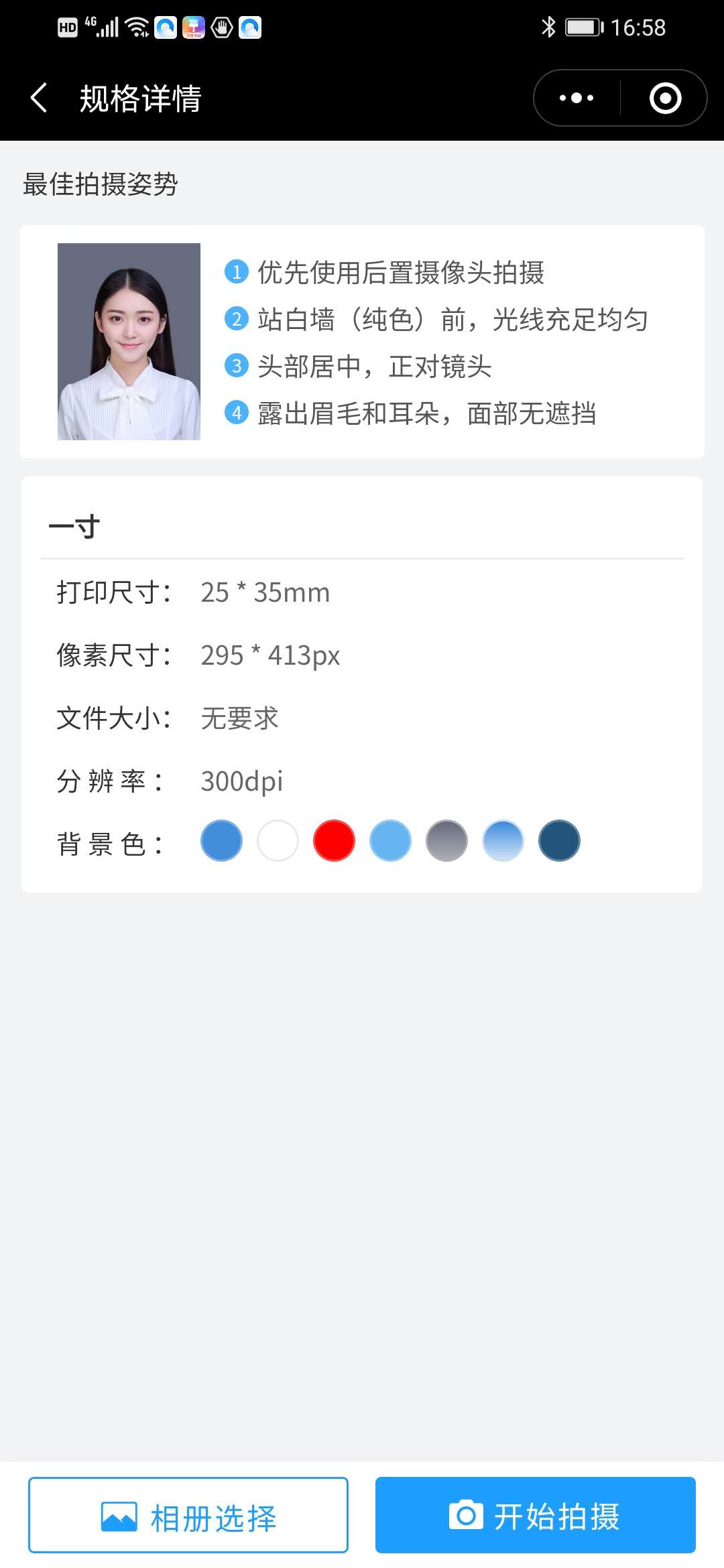 - 使用微信扫描页面上方二维码进入一寸照片