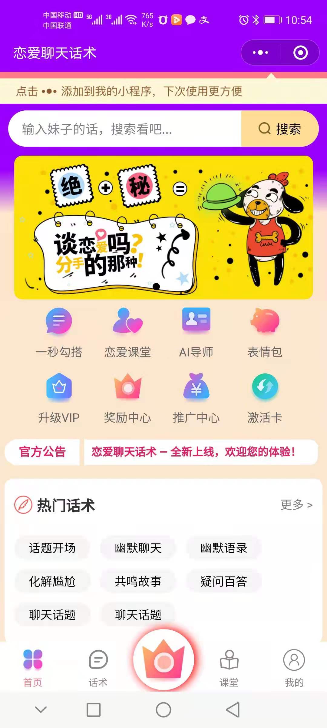 - 在微信中搜索“阿Q恋爱话术”即可进入小程序
