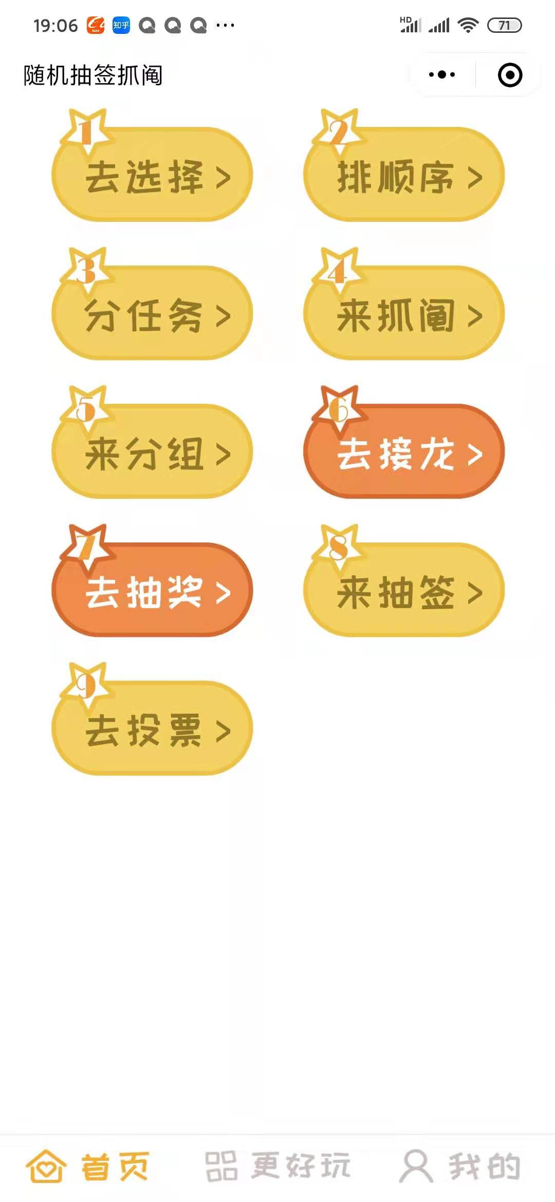 随机抽签抓阄小程序,可快速发起抽签、抓阄、选择、排序、分组、分任务的小工具。团建必备抽签抓阄工具,日常抽签工具