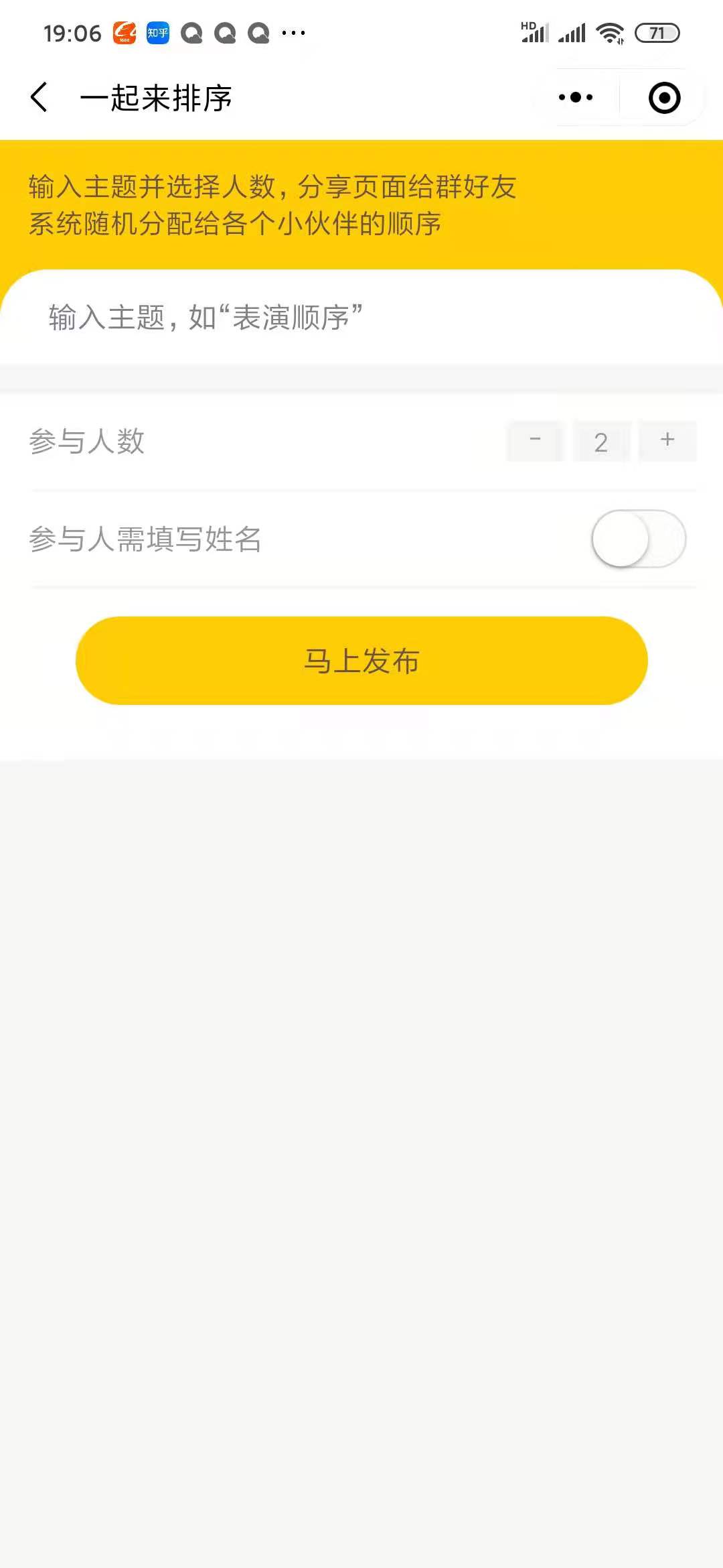 - 在微信中搜索“随机抽签抓阄”即可进入小程序