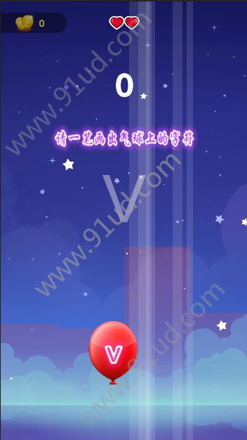 简单休闲的打气球游戏! 随心而动,画出气球上的字符,打爆它。疯狂火爆连击?! 游戏中气球会从底部往上徐徐升起,你需要在屏幕上准确地一笔画出气球上的字符来,可以尝试多次,画对了得分。 如果气球飞出屏幕还没有准确的一般画出气球上的字符,则会失去1个红心(代表生命),每次游戏失去2个红心则游戏结束。