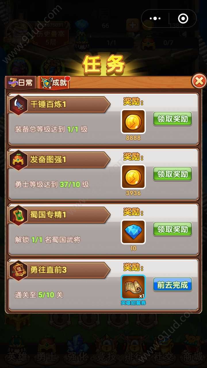 2、完成每一次任务还可以获得额外的金额奖励,你可以用来升级勇士和武将;