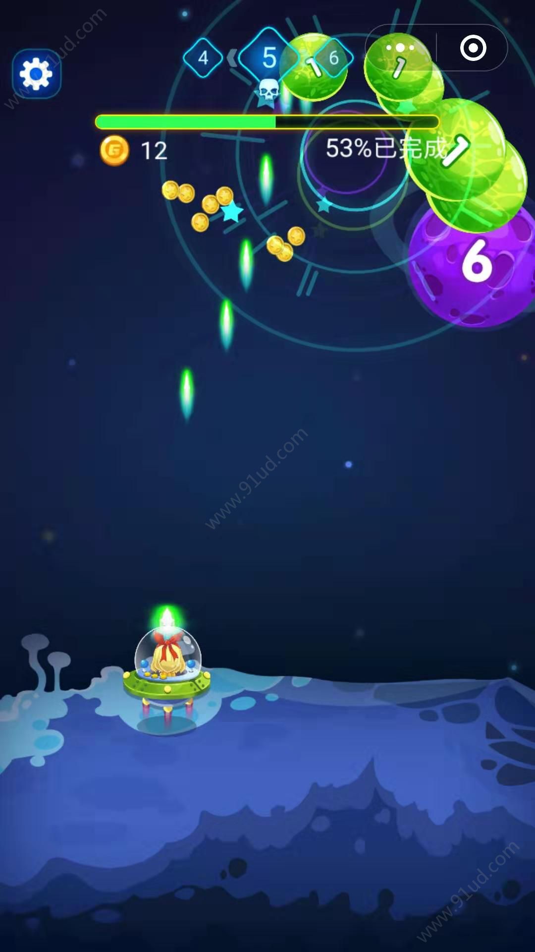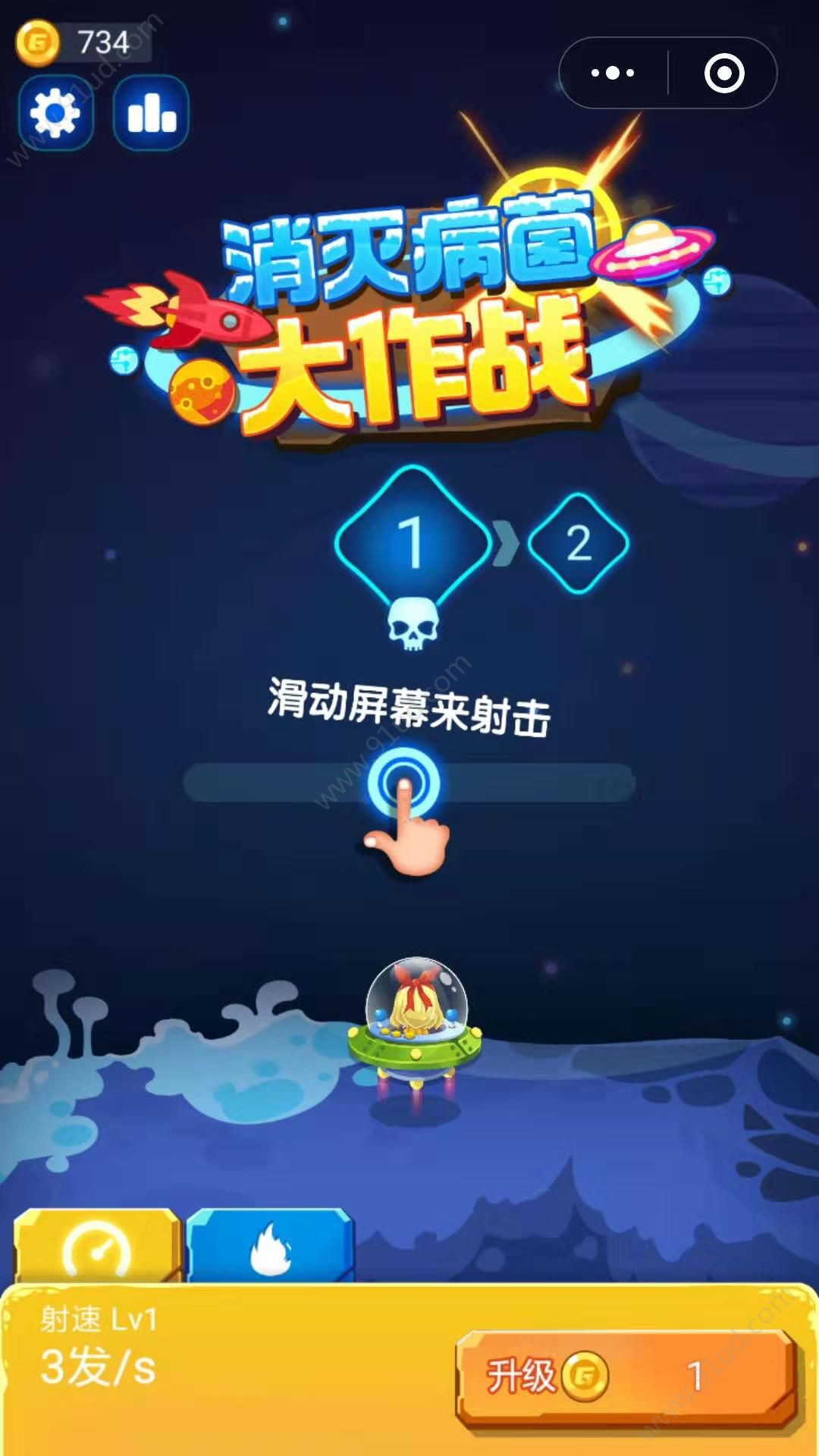 3、射击的病毒越多获得的金币就越多,这样你就可以用金币来升级子弹。