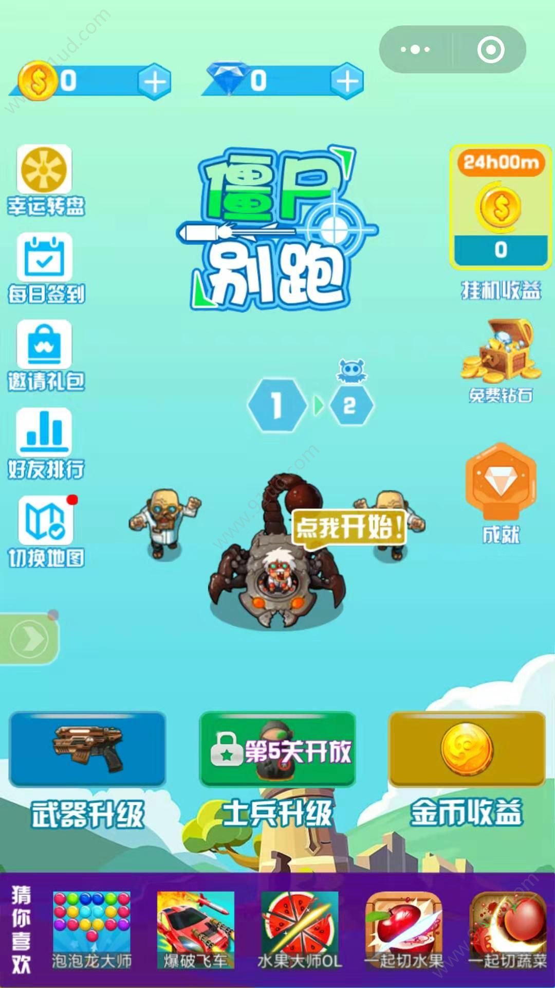 僵尸别跑微信小游戏由僵尸别跑团队开发,并于2019-03-14 09:56:45发布于小程序游戏盒子 2177.cn