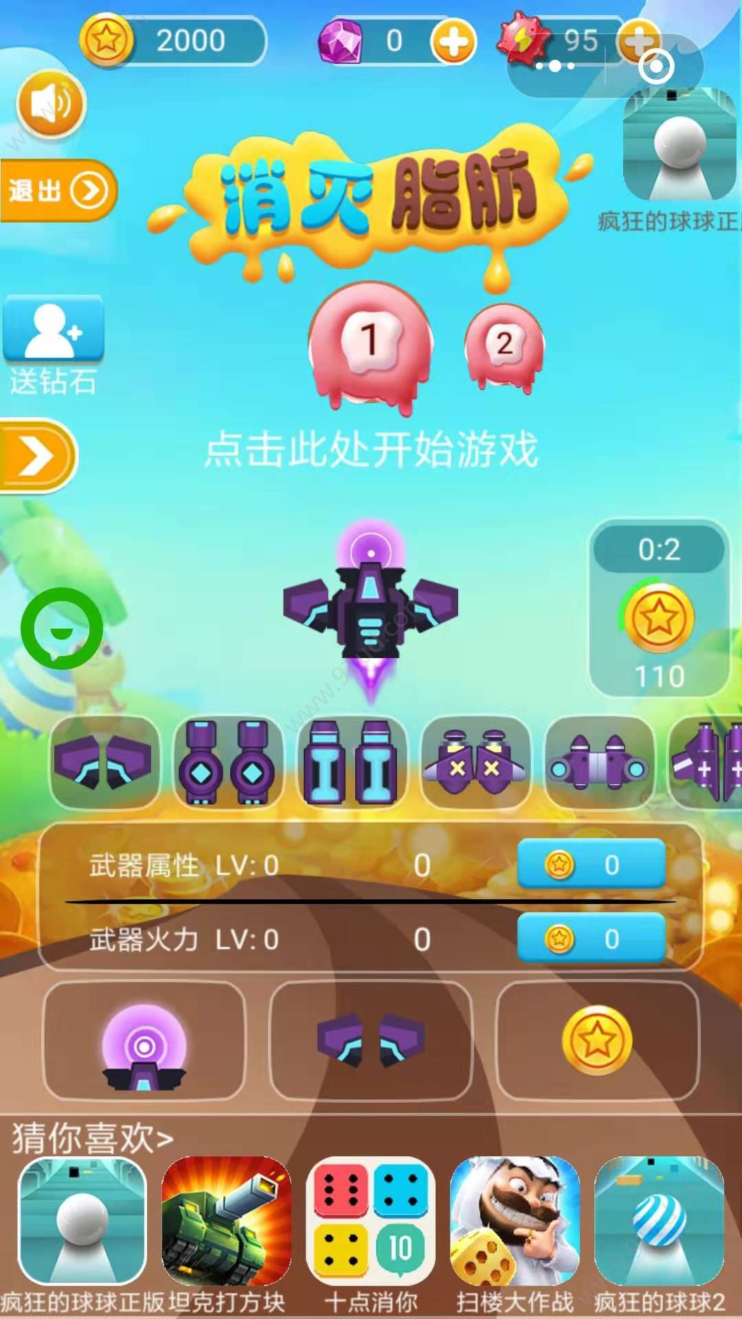 3、用获得的金币来购买升级你的战机快速消灭脂肪球。