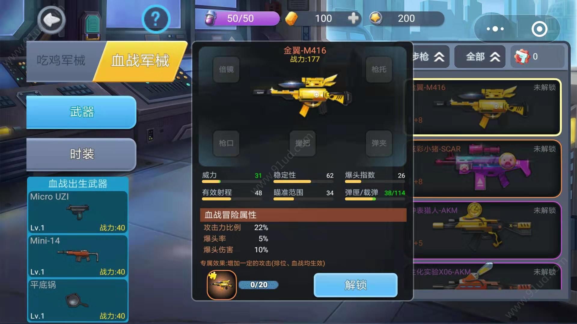 2、所有已解锁武器可以设置为“已装备”状态,在战场中玩家在拾取到武器只能设置一个外观。