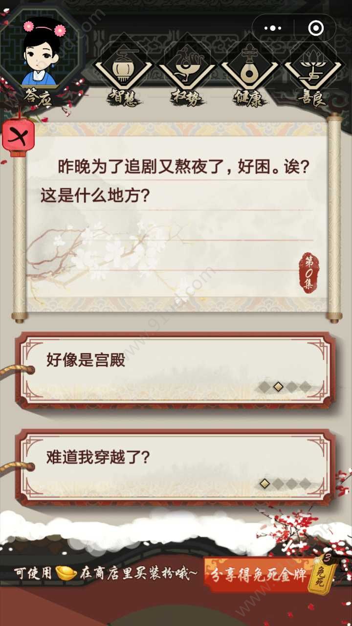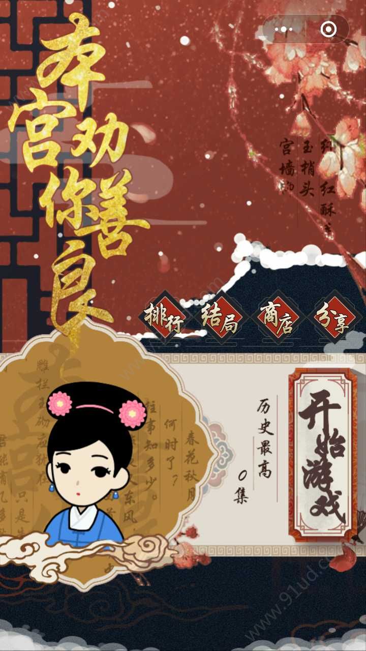 本宫劝你善良小游戏,轻松幽默的宫斗类微信小游戏,开动脑筋在后宫中生存下来,你能活到第几集?游戏玩法非常的有趣哦,需要玩家投入到角色中来,根据自己的思维来选择结果,看看你在整个游戏中能活到多少集,游戏中有智慧、权势、健康、善良四类分值,如果高于或低于临界点时会闪烁提醒,每道题的选择结果户影响四个数值的升降。坚持答过的题目越多,可以获得更多的元宝,去商家换美美的装扮,也可以解锁九种不同的结局。