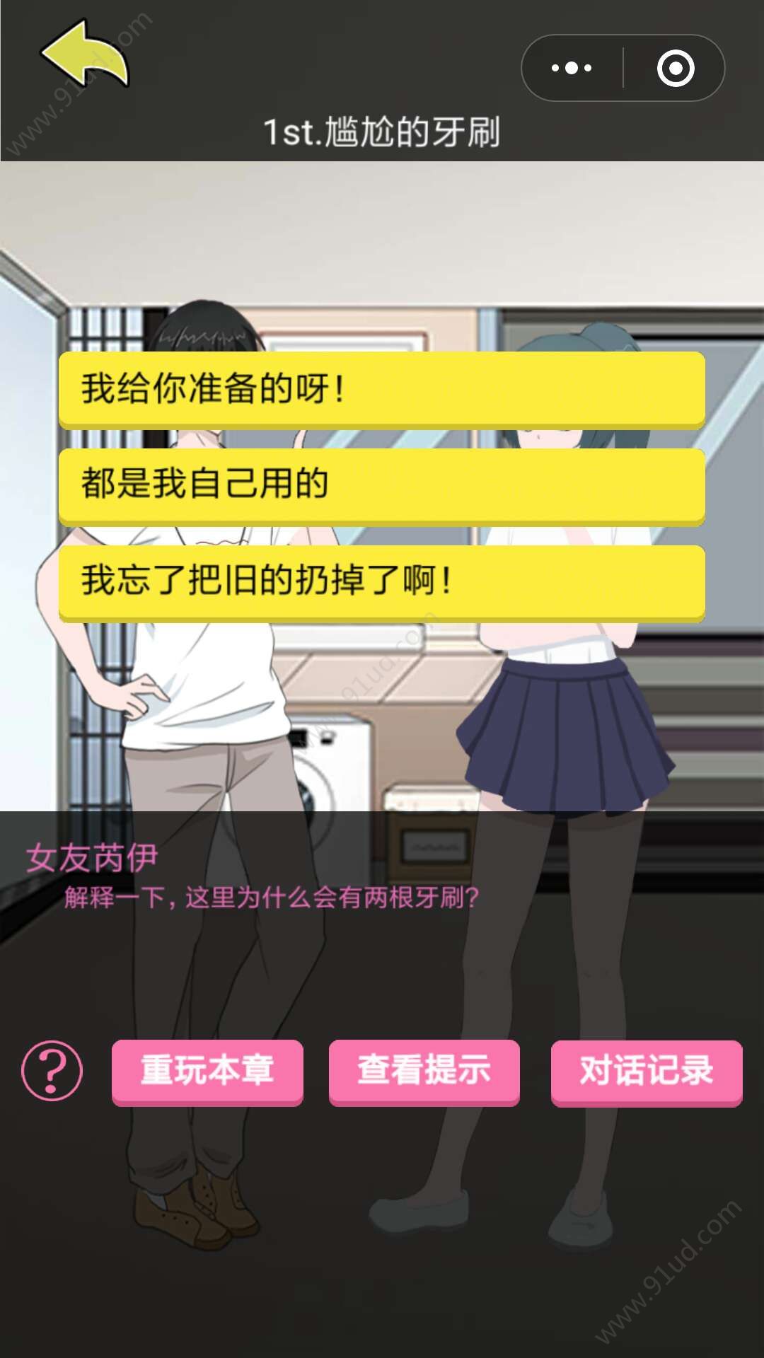 1、剧情玩法:通过观看剧情故事背景,了解事态形式。为男主角选择恰当的说辞,避开分手危机。不同的选项会导致不同的剧情走向。剧情过程中可以直接查看提示做出更明智的选择。