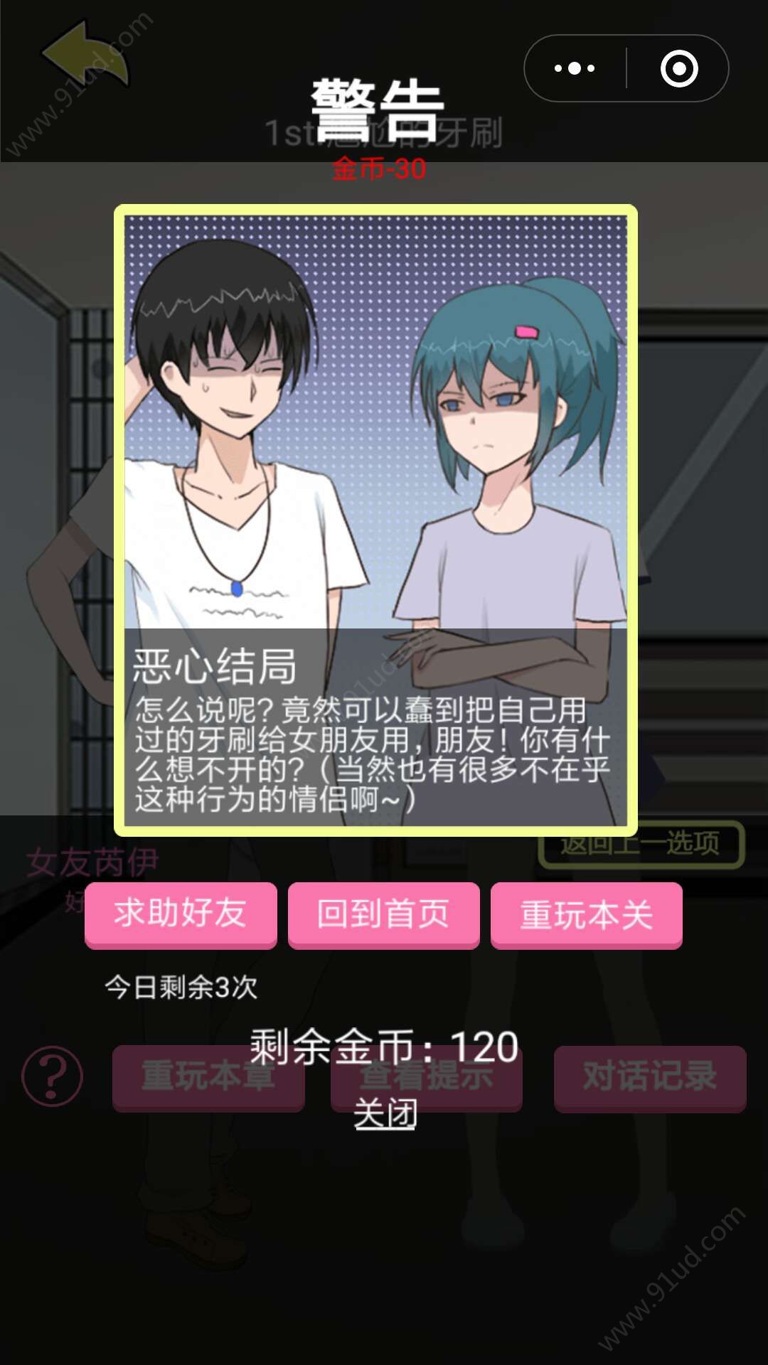3、金币用途:辩解失败将消耗30金币。中途退出消耗30金币。重玩关卡消耗30金币。查看提示消耗60金币。