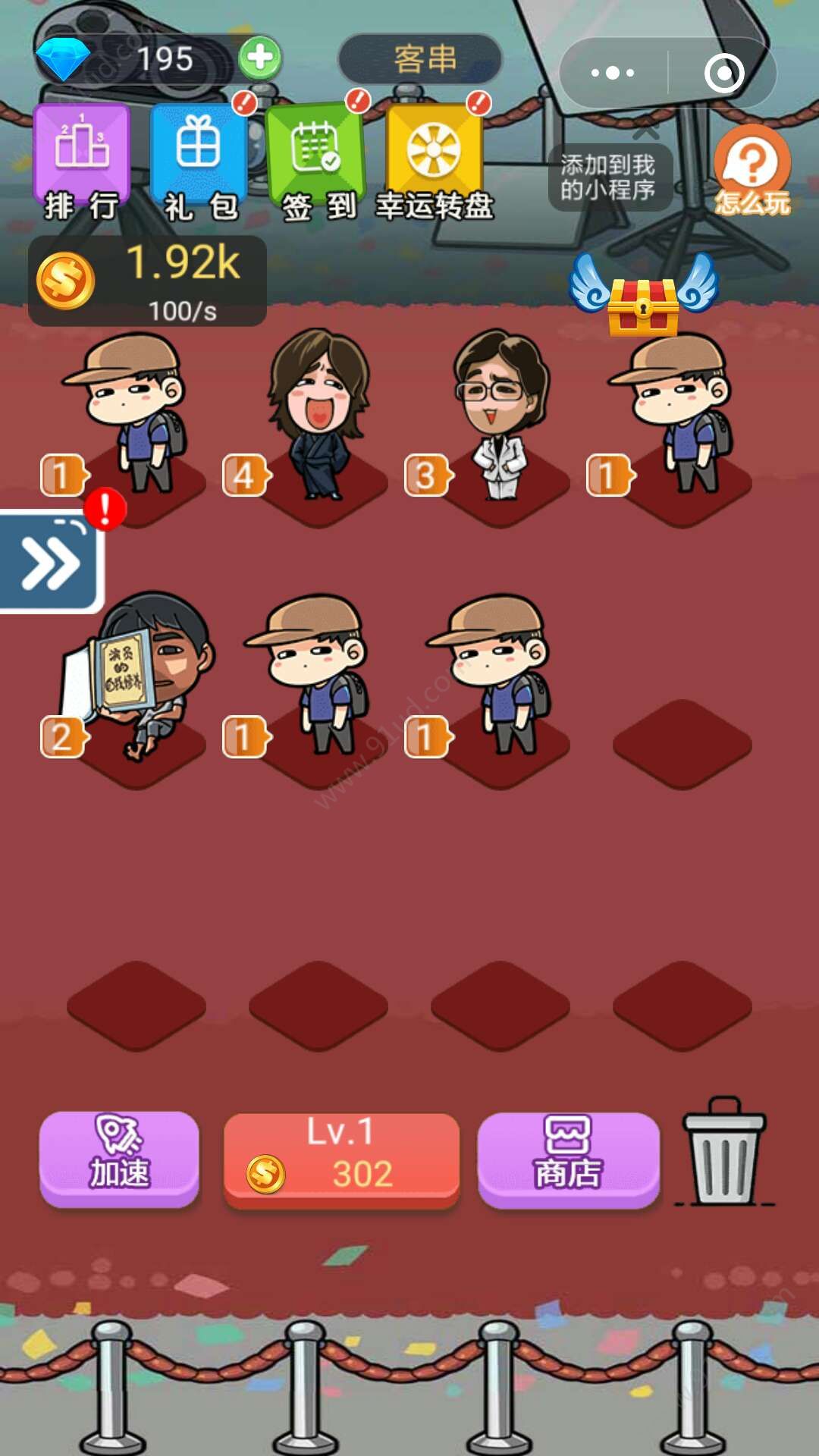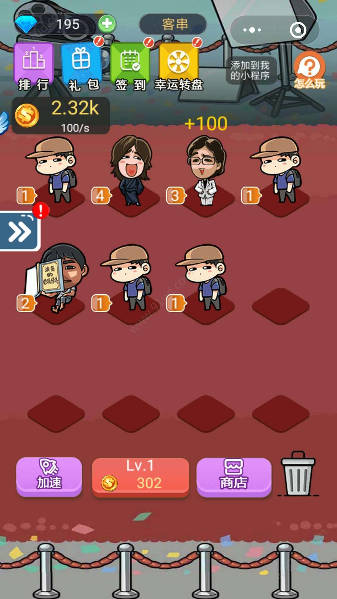 我想做明星小游戏是一款合成明星人物的策略型微信小游戏。开局跑龙套,连狗都没有,看你如何一路逆袭成为明星!玩法非常的简单,不管你是大人还是小孩肯定都会非常喜欢这款小游戏哟,进入游戏你还只是一个素人,但是在当明星的道路上真的非常的艰难哦,需要你不断的合成升级才能到达你想要的明星路,从素人、群演、龙套、客串、路人甲、宋兵乙、妖怪丙、特约龙套等级别,这些级别的角色所获得的收益都不同哦,等级越高收益就越高。