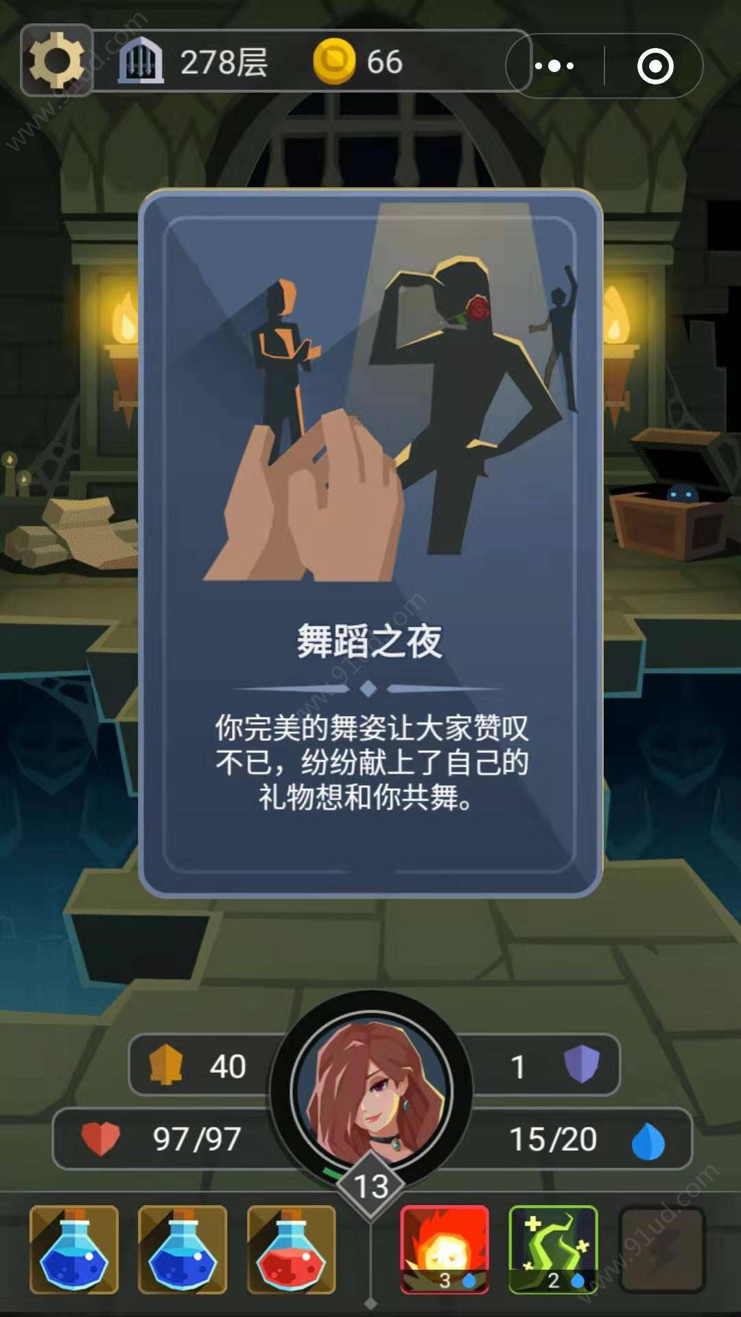 2、多种模式让你轻松选择,进入地牢后通过翻牌的形式来确定你的去处,还可以获得更多技能;