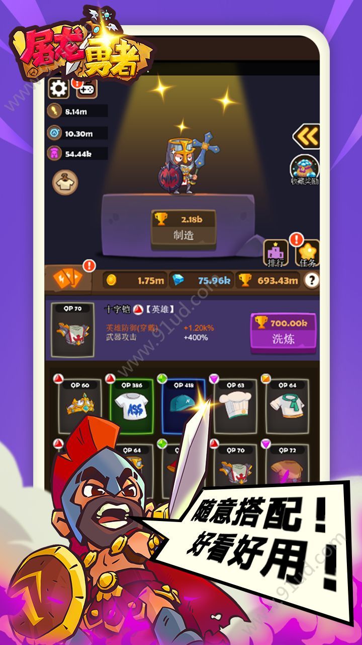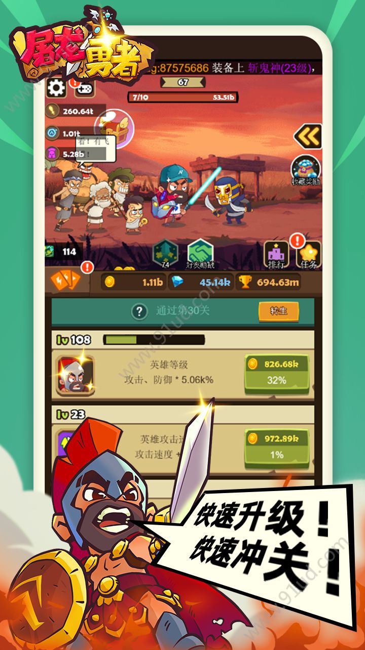 屠龙勇者是由杭州哲信信息技术有限公司所开发的一款角色游戏,它是一款竖屏游戏,角色自动攻击敌人,打败敌人后可以捡起他们的装备,如盾、刀,相同等级的刀和盾可以进行合成更高等级的武器,武器等级非常多,你需要进行通关来获得更多的武器来进行融合,获得更高的战斗力。