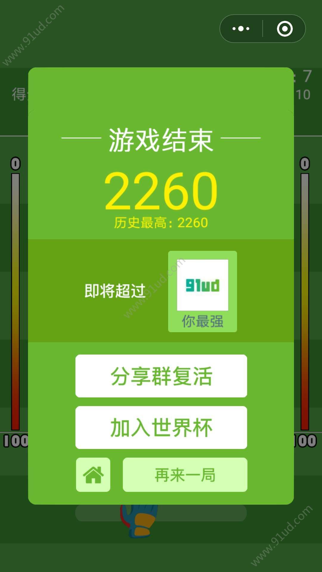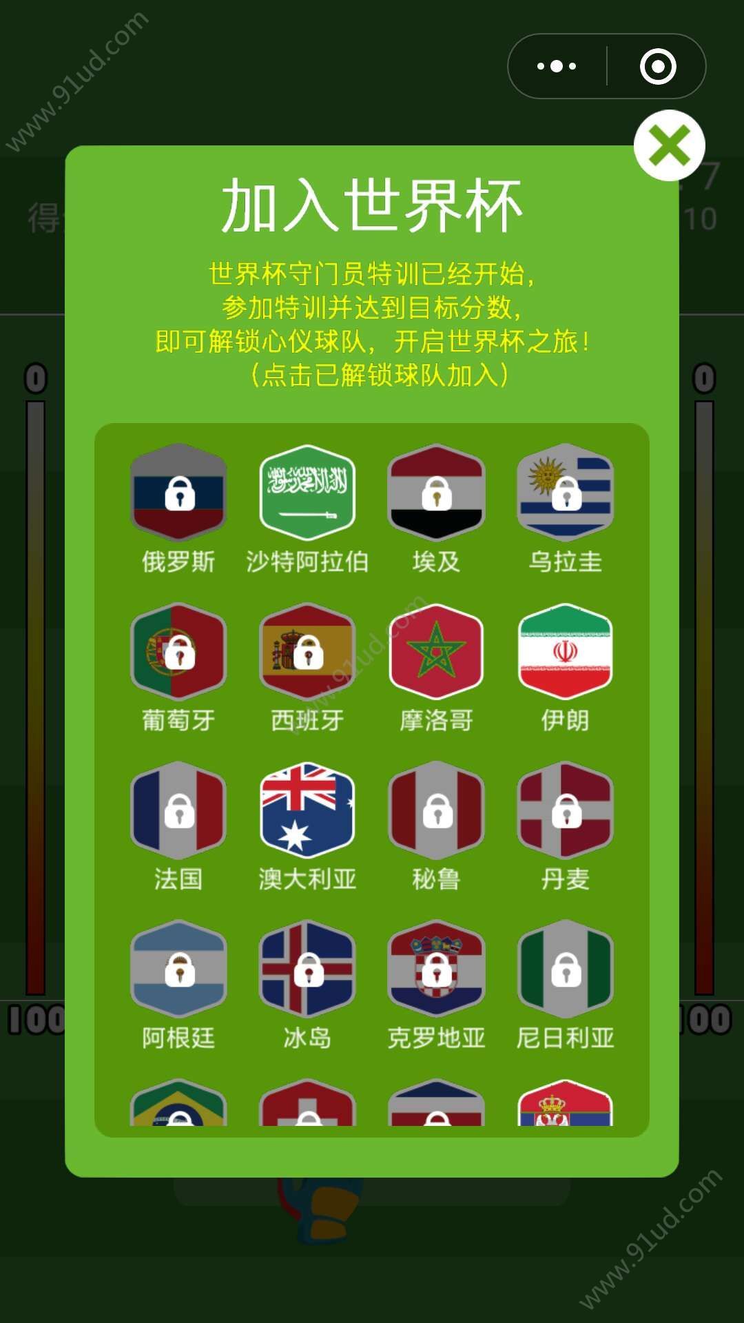 - 使用微信扫描页面上方二维码进入最强守门员