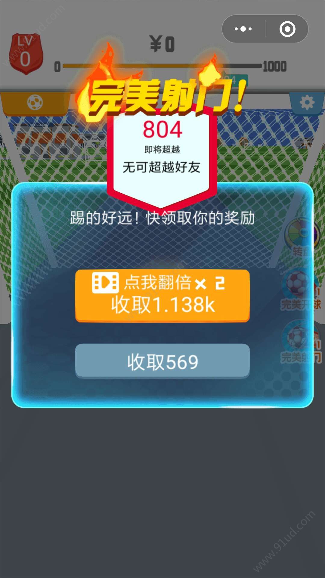 - 在微信中搜索“完美射门”即可进入小程序