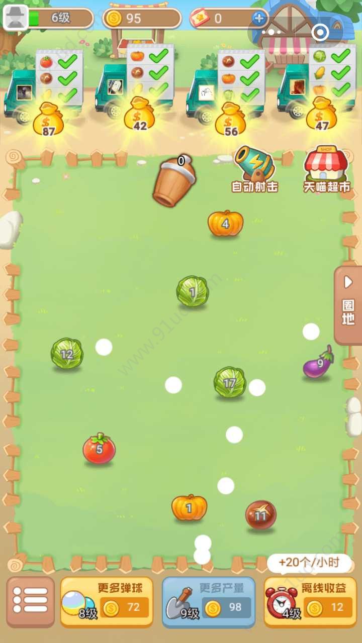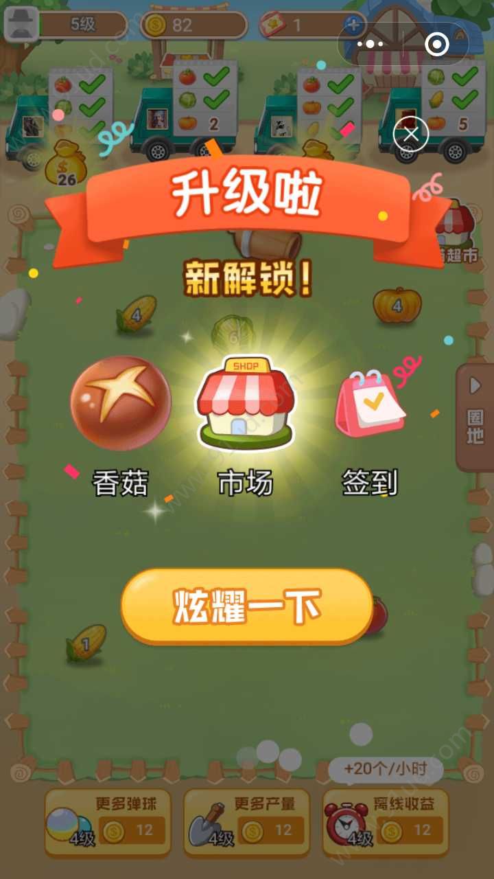 3、使用金币来升级农场增加更多的弹珠,解锁更多的技能;