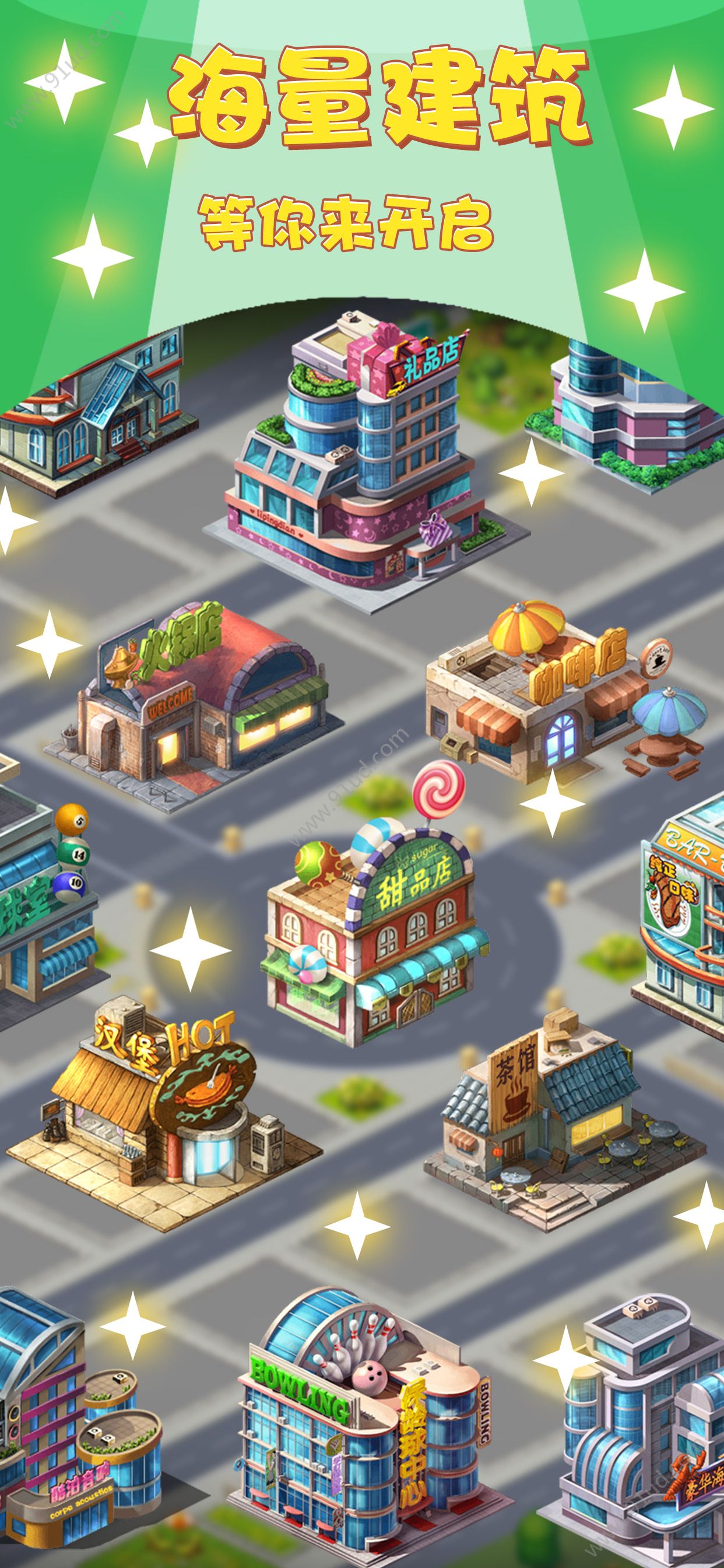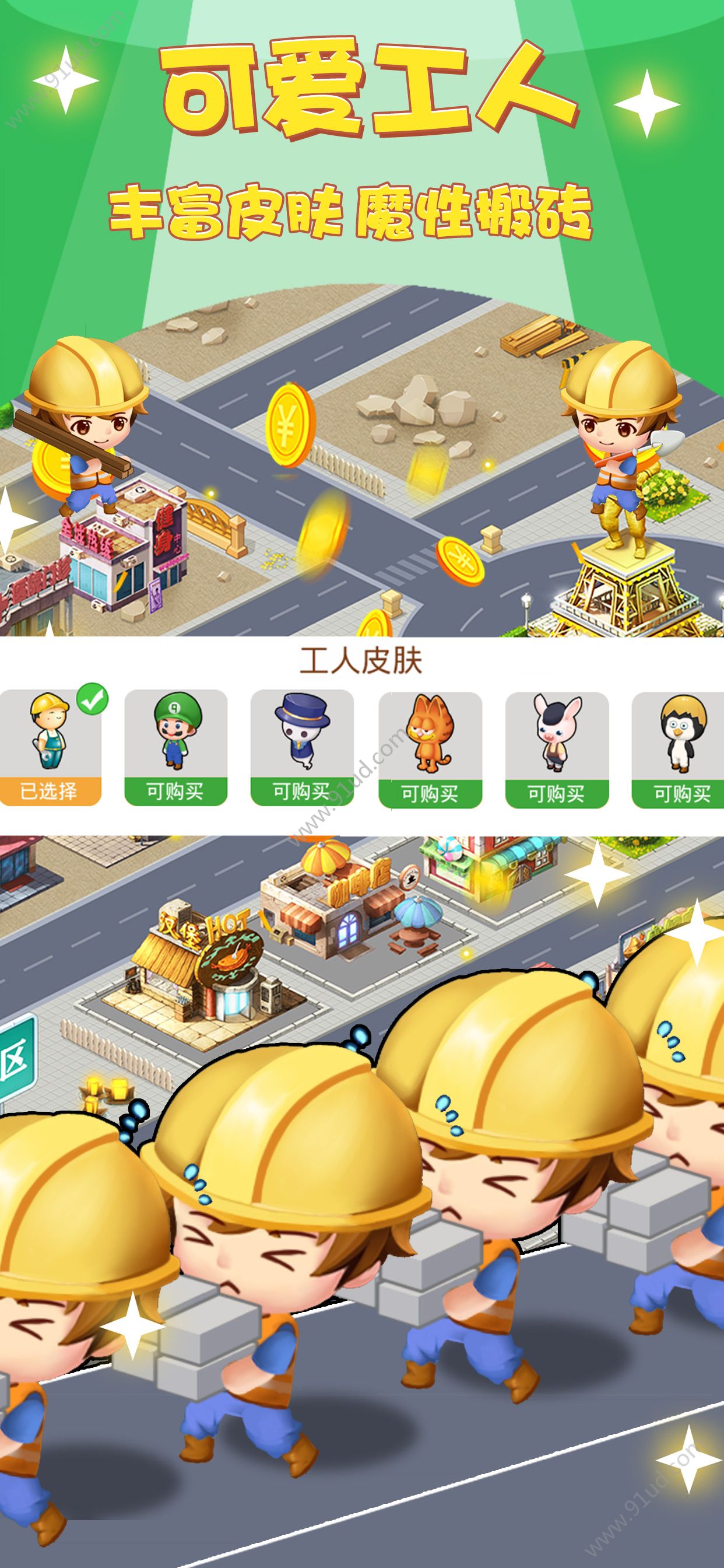 【温暖励志,建造城市】需要你做的事不是很多,能带给你的成就感却很多,升级建筑,获得更多的金币解锁建筑和街区,点击屏幕加快建造工人的行动速度。