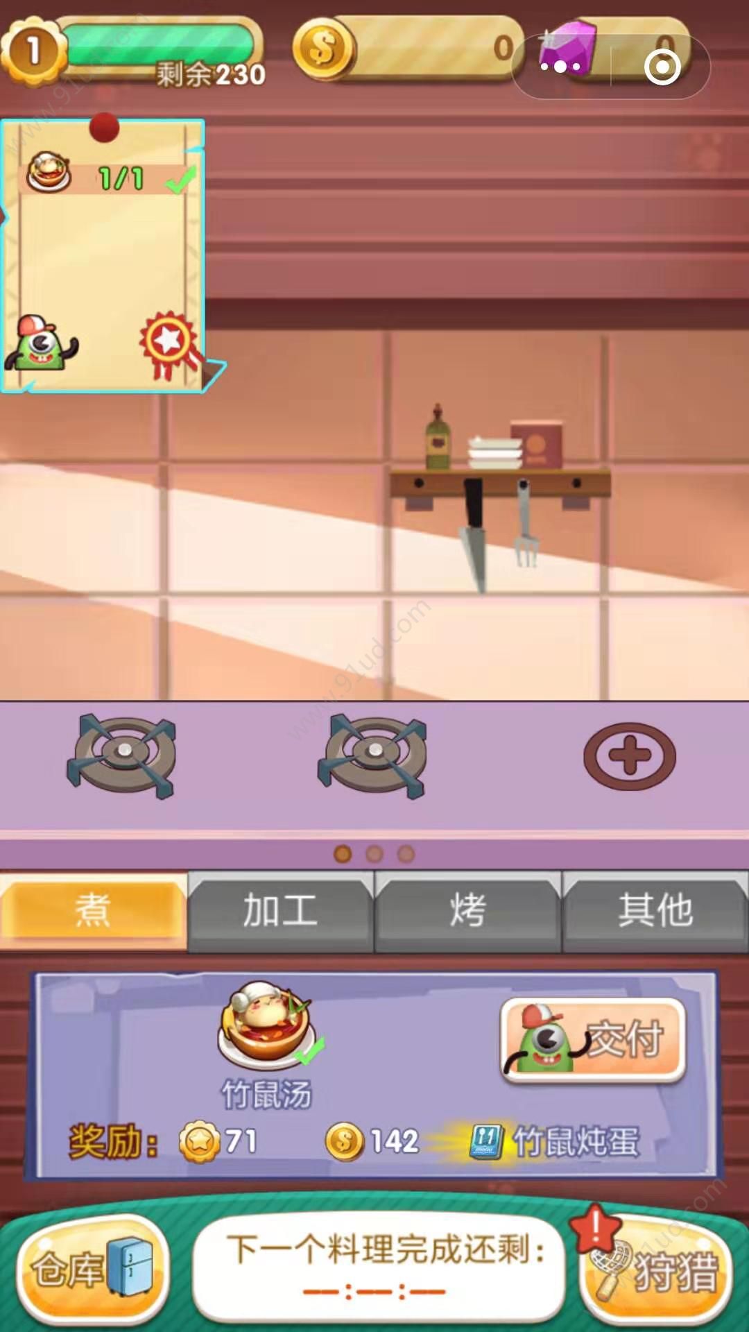 想要把餐厅经营的非常的好,那就一定要抓很多竹鼠,这样你就可以完成顾客的订单,订单完成的数量越多,获得的金币奖励也就越多,并且餐厅升级速度也会更快哦,小伙伴们赶紧来加入游戏吧!