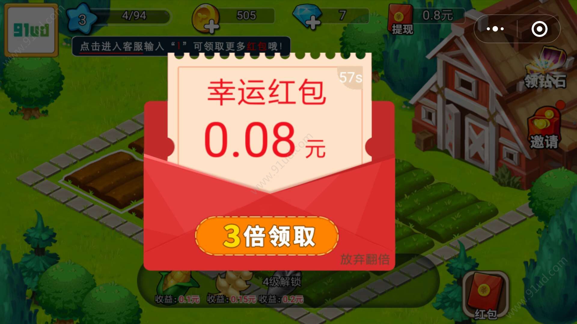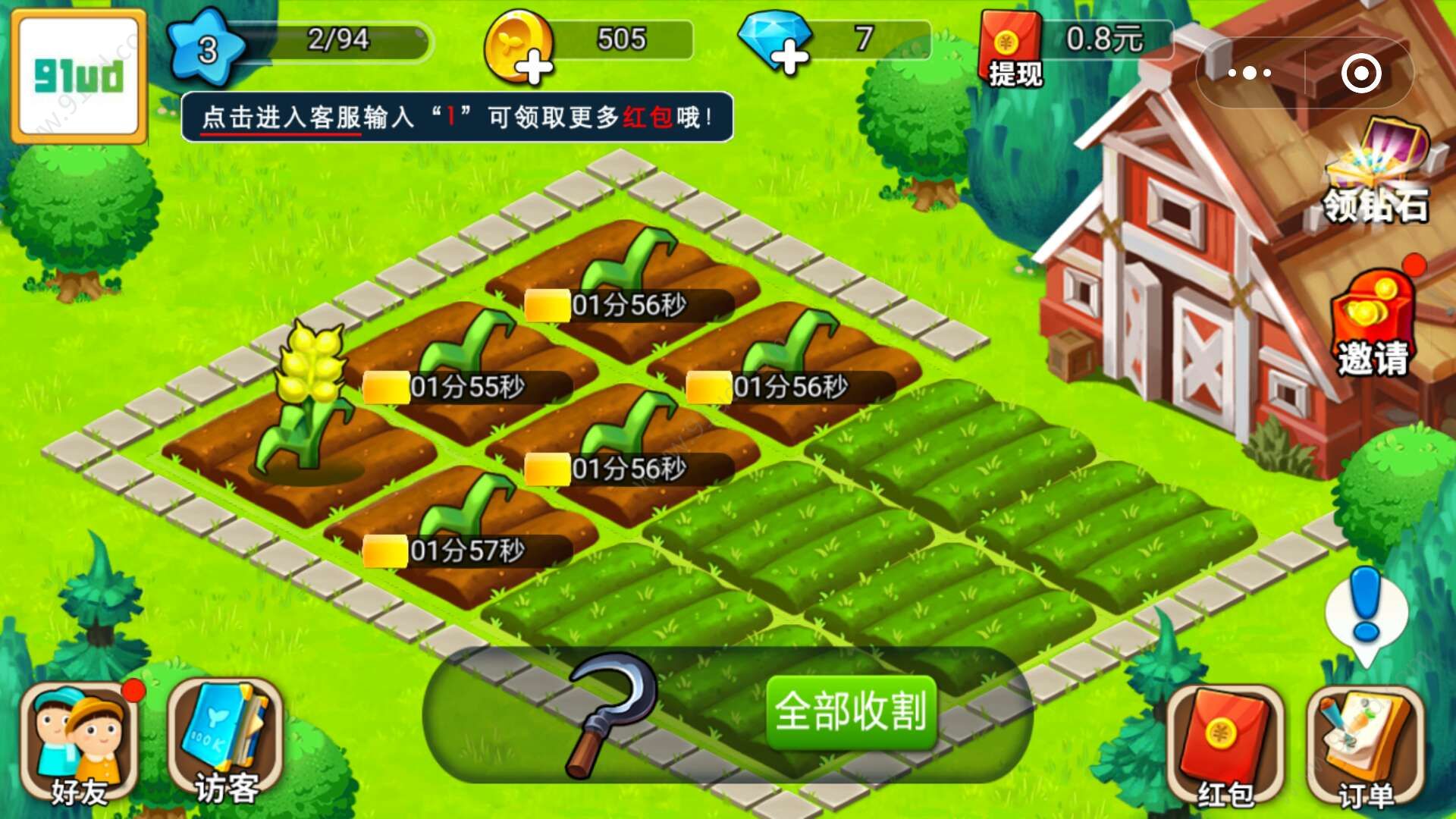 3、你也可以到好友家中去偷菜,说不定还能偷到现金红包哦;