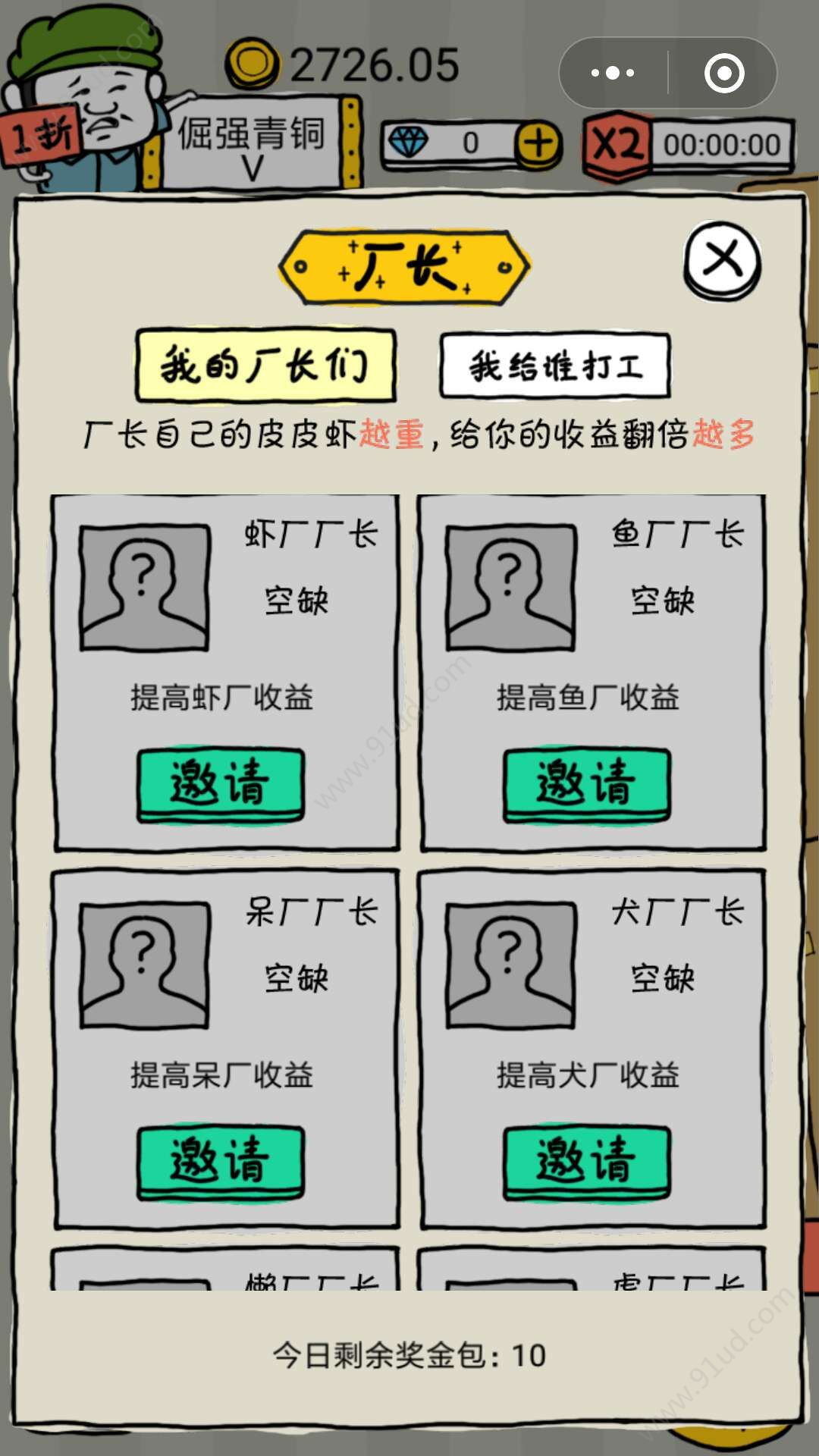 3、邀请把你的好友做厂长,厂长们召集起来更好的发展!也可以为朋友去打工。