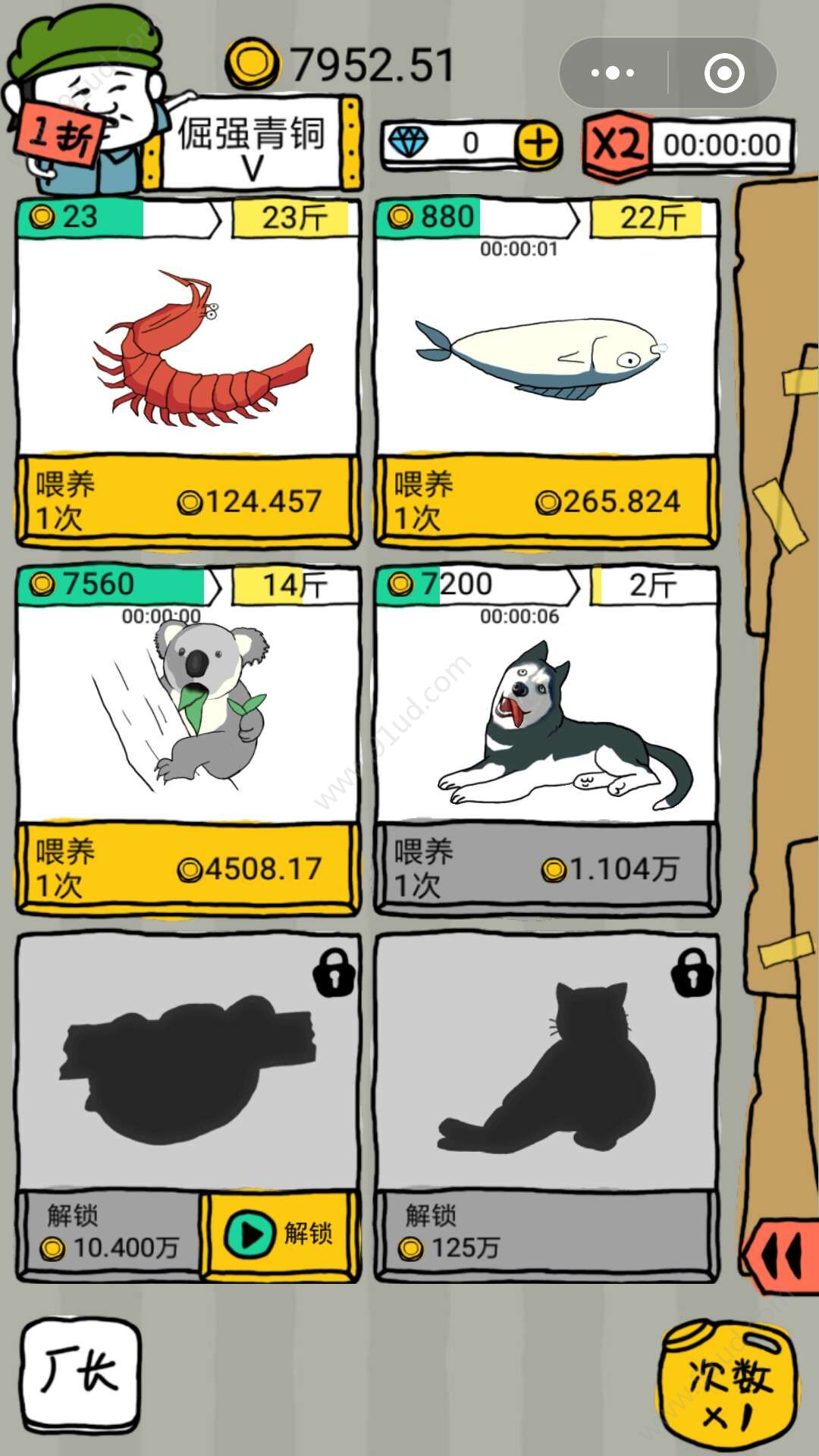 2、通过所获得的金币来解锁更多灵兽,灵兽种类越多体重越重,获得的收益就越大;