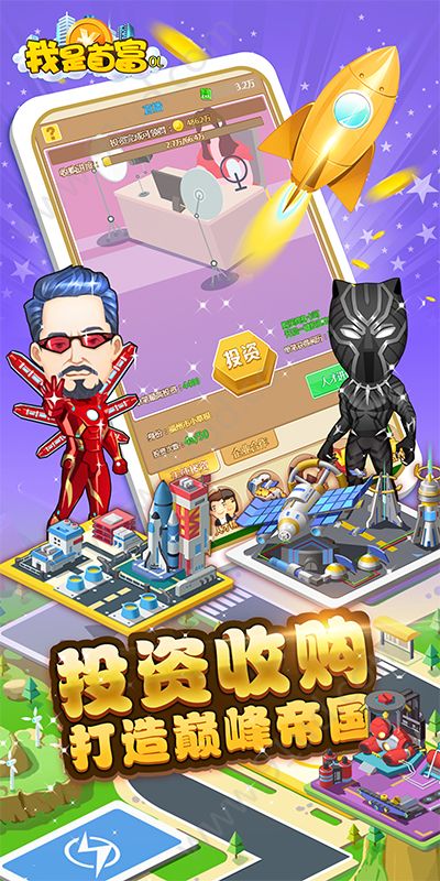 《我是首富OL》是一款经典有趣的模拟经营类游戏,能让你充分感受到赚钱的乐趣。农村出身的你,从最开始只有一个地摊位到后面富可敌国。游戏玩法其实很简单,你就只要在游戏中兴建各种建筑,充分利用给到的土地资源,建设城市,组建自己的院线、商业街、研究团队、生产基地,让整座城市为你赚钱。你的目的只有一个,强势逆袭,世界首富!!