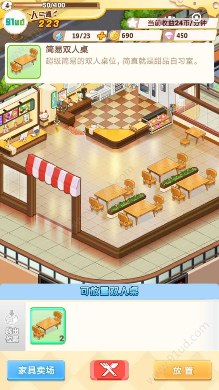 3、用获得的金币可以购置各种餐桌和食材,解锁更多技能。