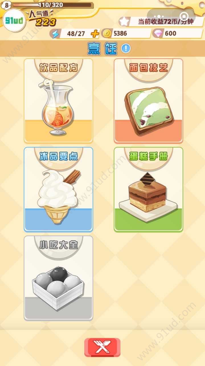 2、不断经营中还可以解锁更多美食,获得更多顾客的喜爱让你的店铺人气值大升;
