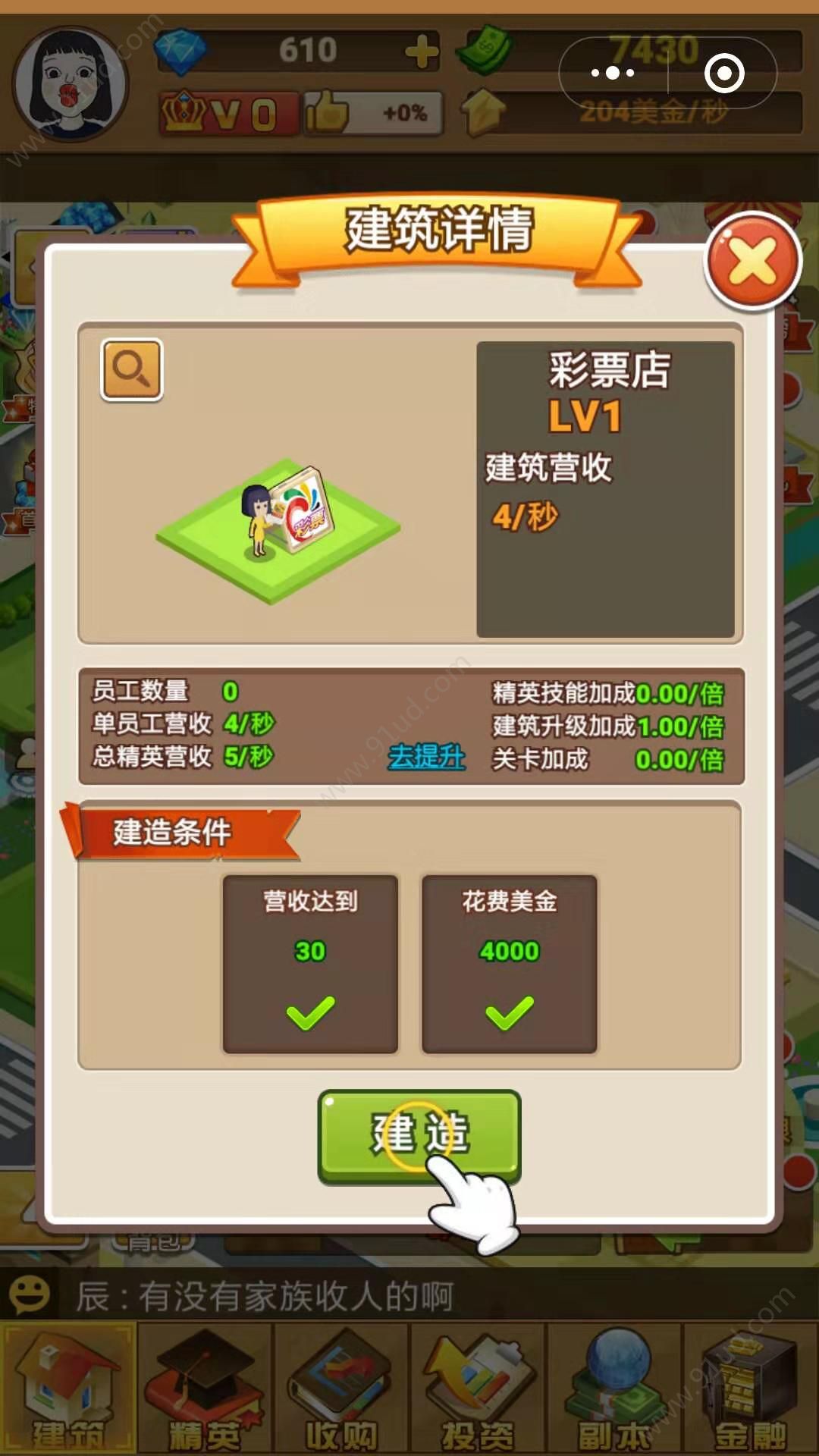 1、不断的在城市里进行造造造,买买买与卖卖卖就能够快速致富哦;