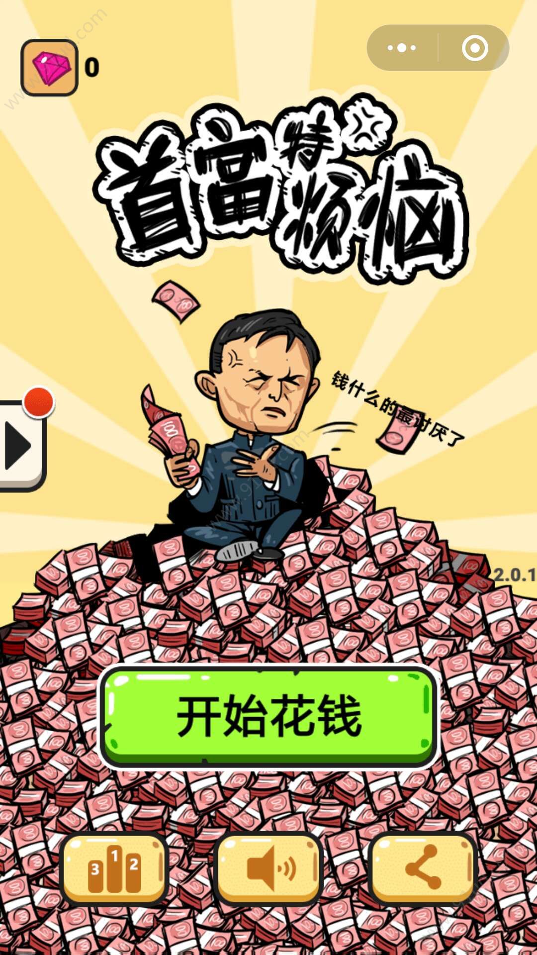 首富特烦恼小游戏,这是一款模拟富翁生活的策略型微信小游戏。突然获得10亿家产继承,让你30天花掉10个亿,敢不敢来挑战。 富豪的生活你不懂,如何快速花掉10个亿,考验你的能力!这款小游戏非常的有趣,剧情式的发展就看玩家们能不能把这款小游戏的乐点发现出来。玩家们在游戏中可以大肆花钱,就看你怎么用最短的时间把这10个亿花掉哦。