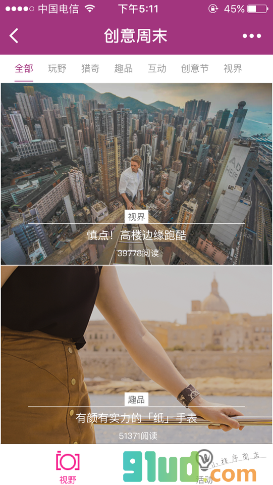 - 在微信中搜索“创意周末同城活动”即可进入小程序