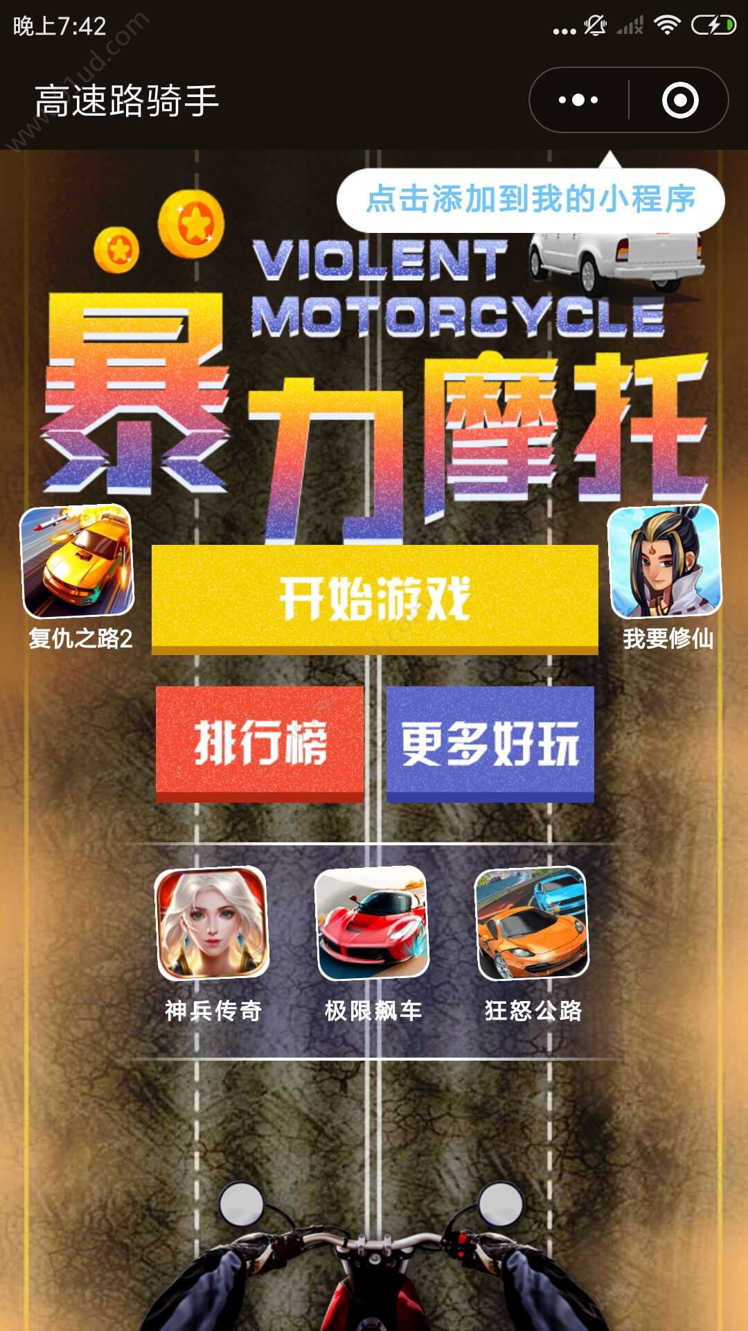 - 在微信中搜索“高速路骑手”即可进入小程序