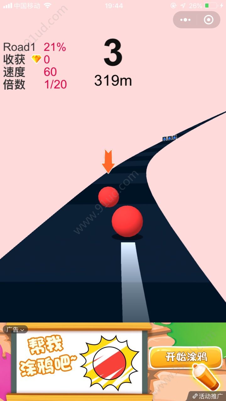 1、滑动屏幕即可开始游戏,同时还可以控制小球左右移动。