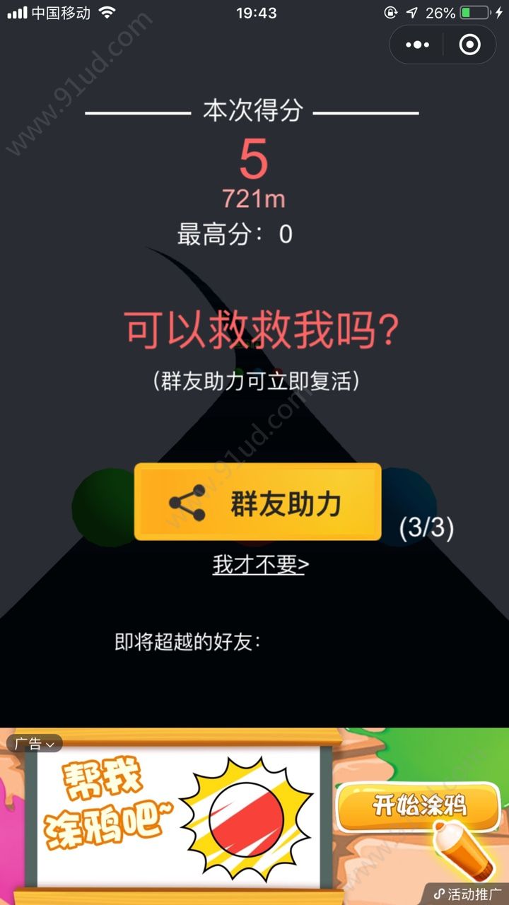3、支持好友助力可以免费复活;
