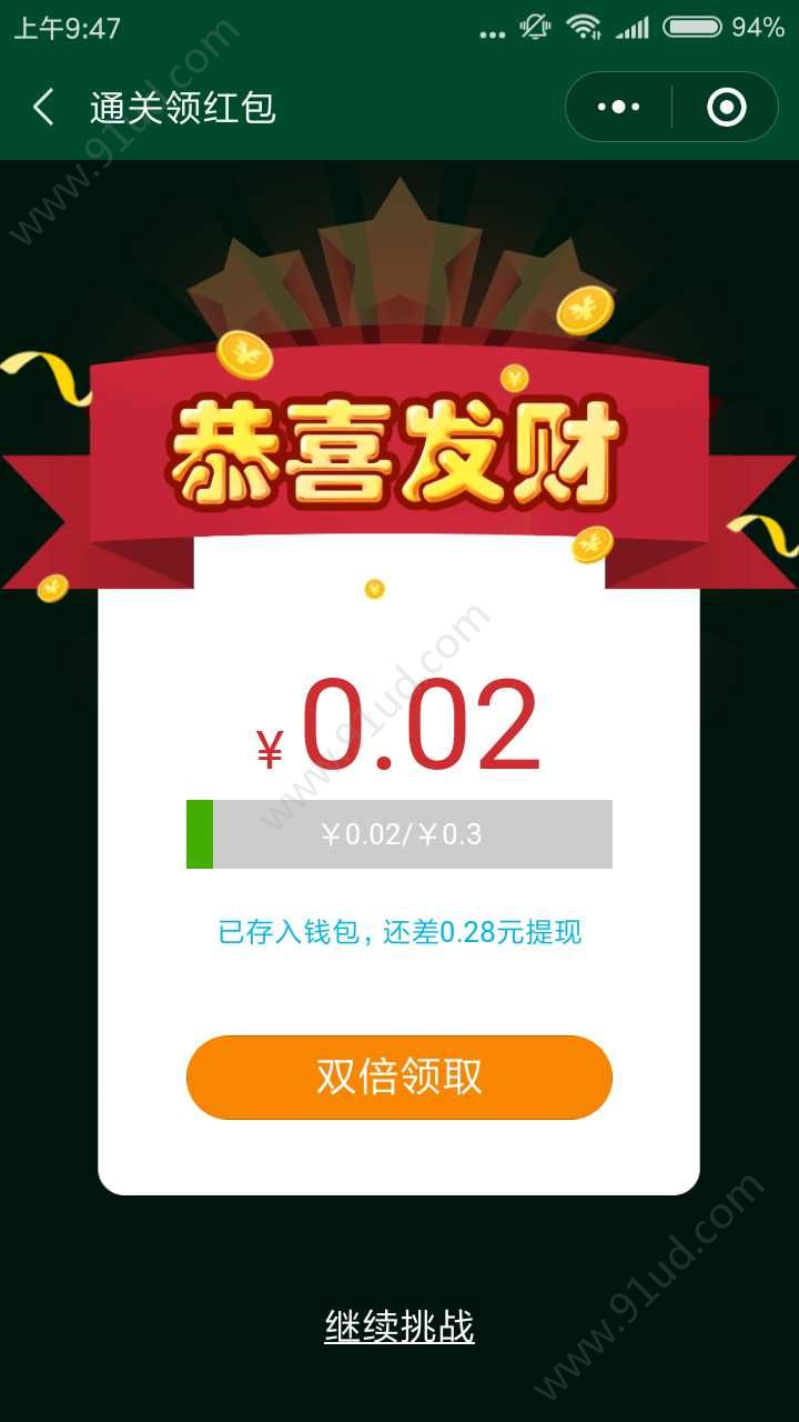 3、红包金额累计到0.3元,最多通关3次,你就可以提现了,祝愿大家都能中红包大奖。