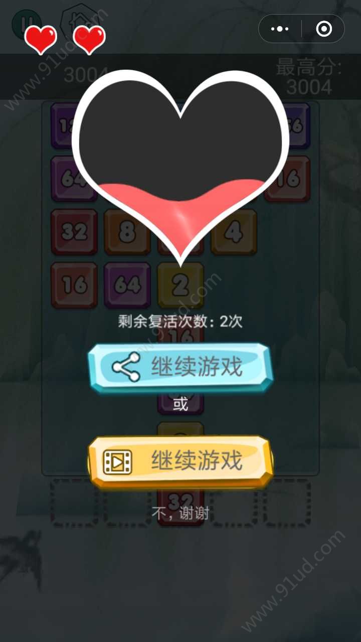 3、通过分享游戏可以复活,也可以重新开始游戏,闲着无聊的时候可以玩玩。