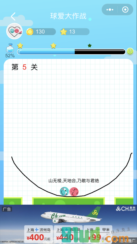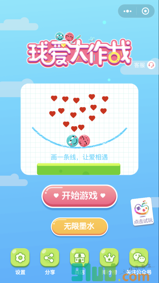 一款休闲益智小游戏,智商高的你在这里能寻求真爱哦! 球爱大作战小程序使用方法: 使用微信扫描页面上方二维码进入球爱大作战小程序 在微信中搜索“球爱大作战”即可进入小程序