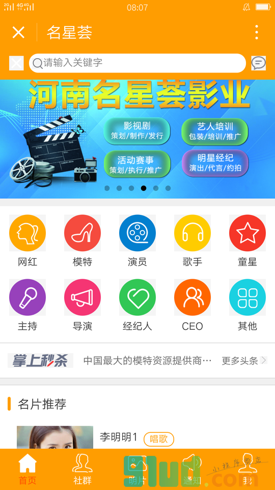 约明星、接通告、挖掘艺人、推广新人、快速吸粉、创建名片、搭建人脉资源共享微社群。