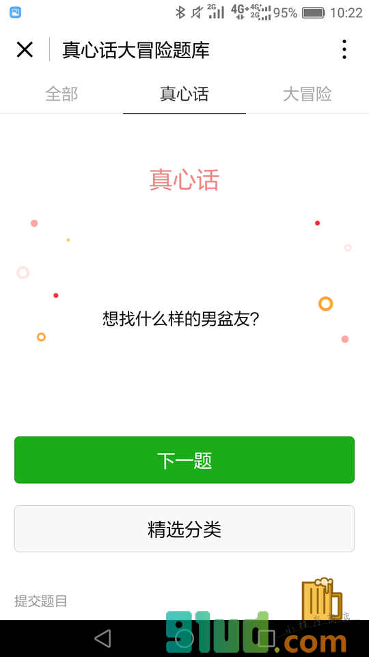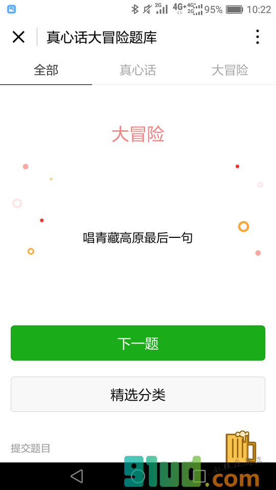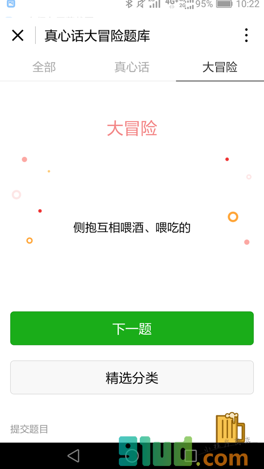 - 在微信中搜索“真心话大冒险题库”即可进入小程序