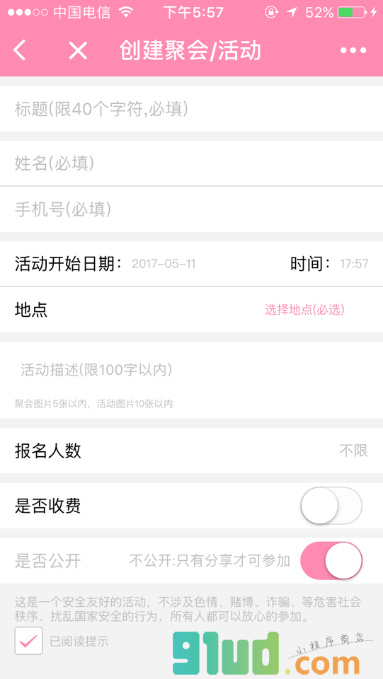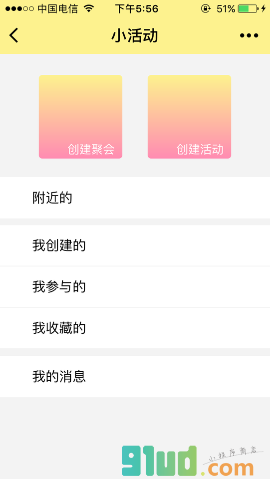 - 在微信中搜索“聚会活动”即可进入小程序
