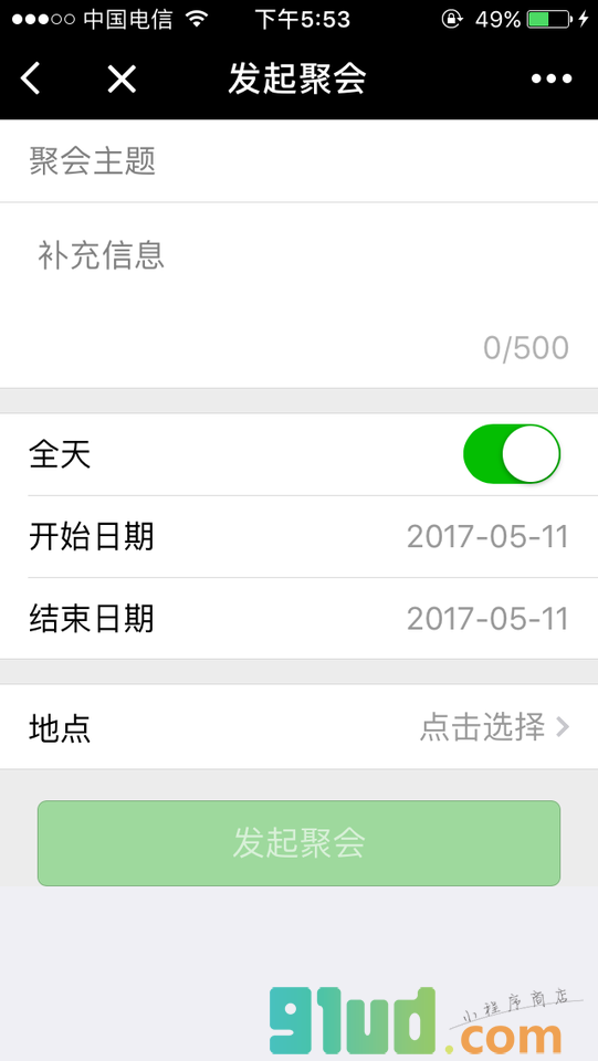 - 在微信中搜索“聚会报名”即可进入小程序