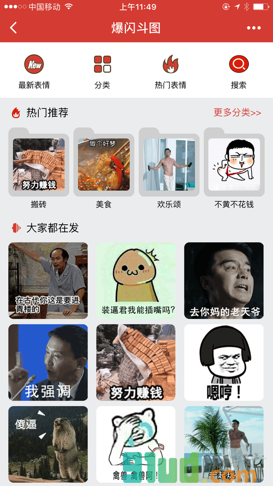 爆闪斗图为用户提供大量有趣的gif表情,同时可以对表情的文字进行重新配文。