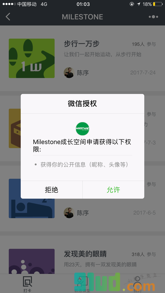 - 使用微信扫描页面上方二维码进入Milestone成长空间