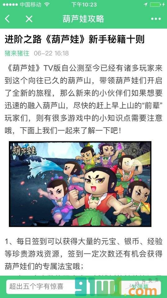 - 使用微信扫描页面上方二维码进入葫芦娃攻略